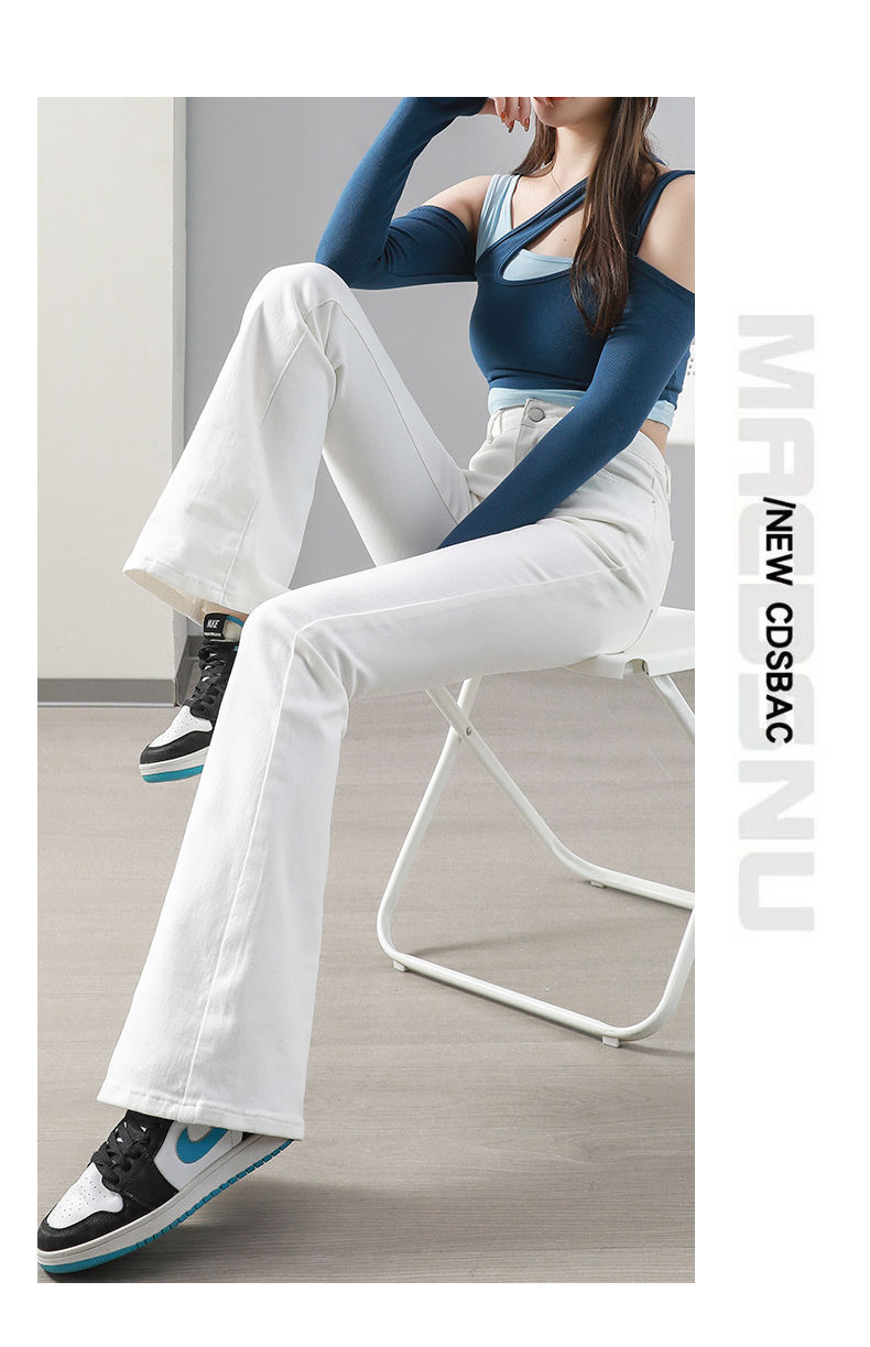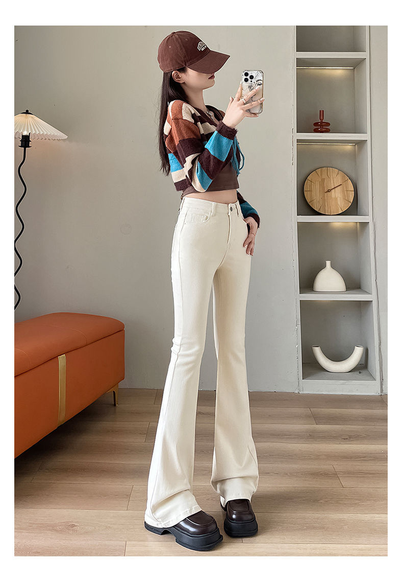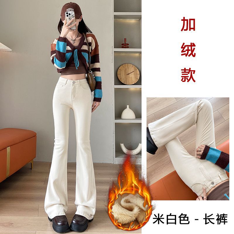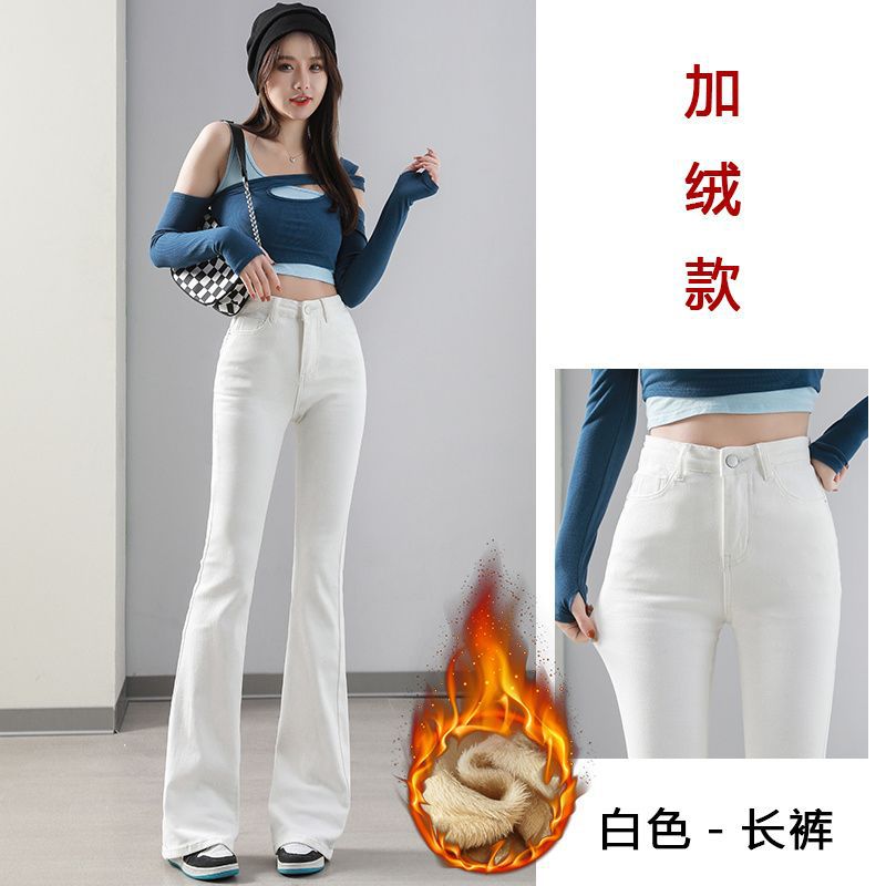Micro-La Jeans 여성용 스트레치 가을 및 겨울 새로운 도착 기모 두꺼운 높은 허리 슬림-핏 화이트 Horn Horseshoe 바지스토어 가기