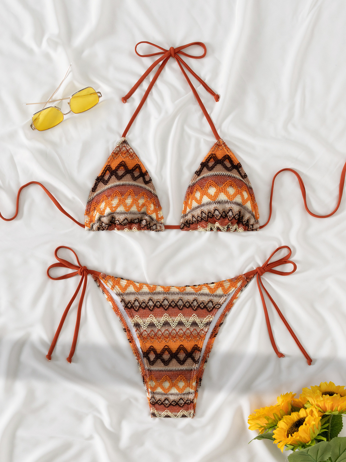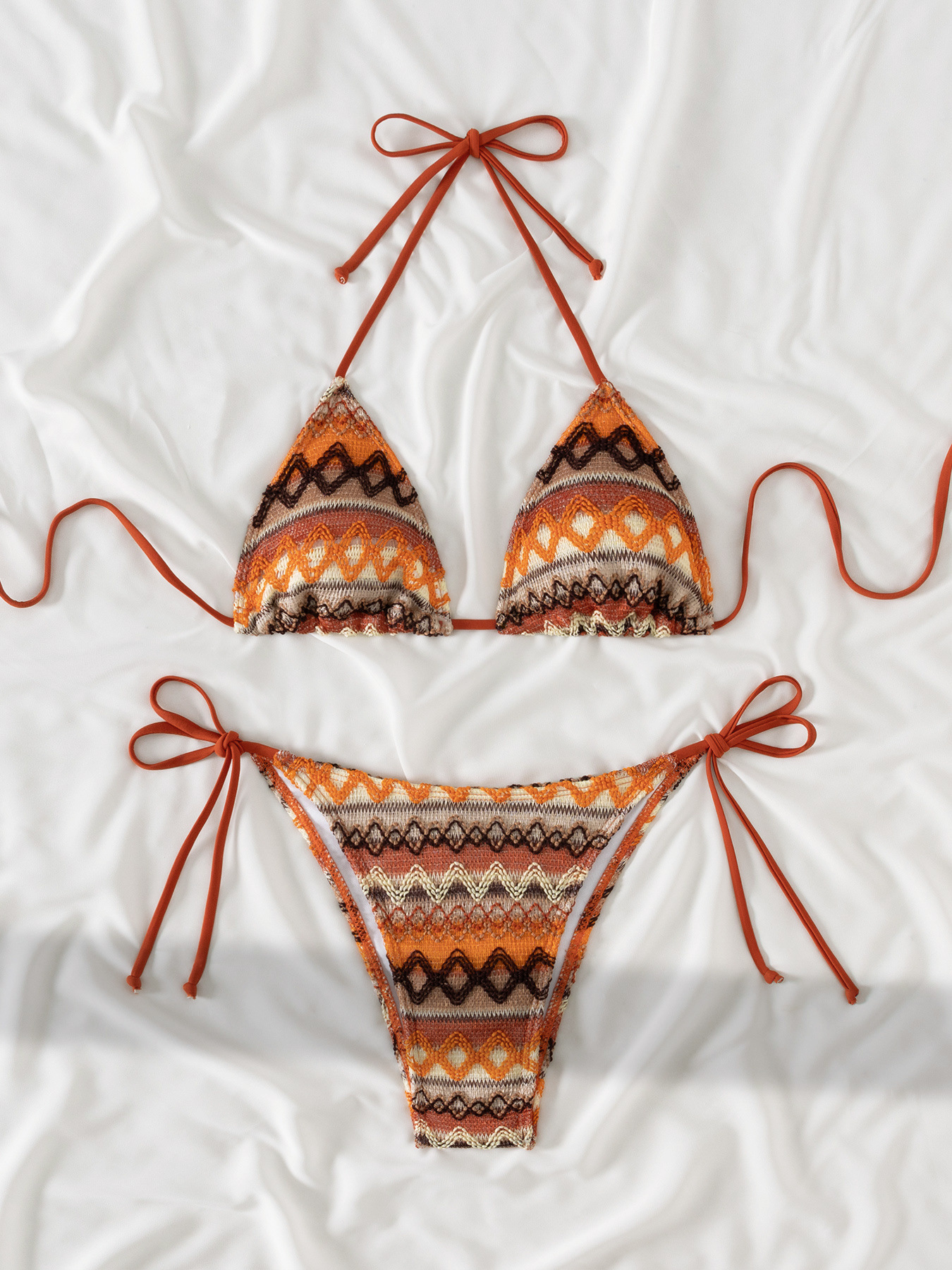 새로운 유럽과 미국의 대외 무역 질감 패브릭 민족 스타일 삼각형 섹시한 비키니 여성 수영복 세트