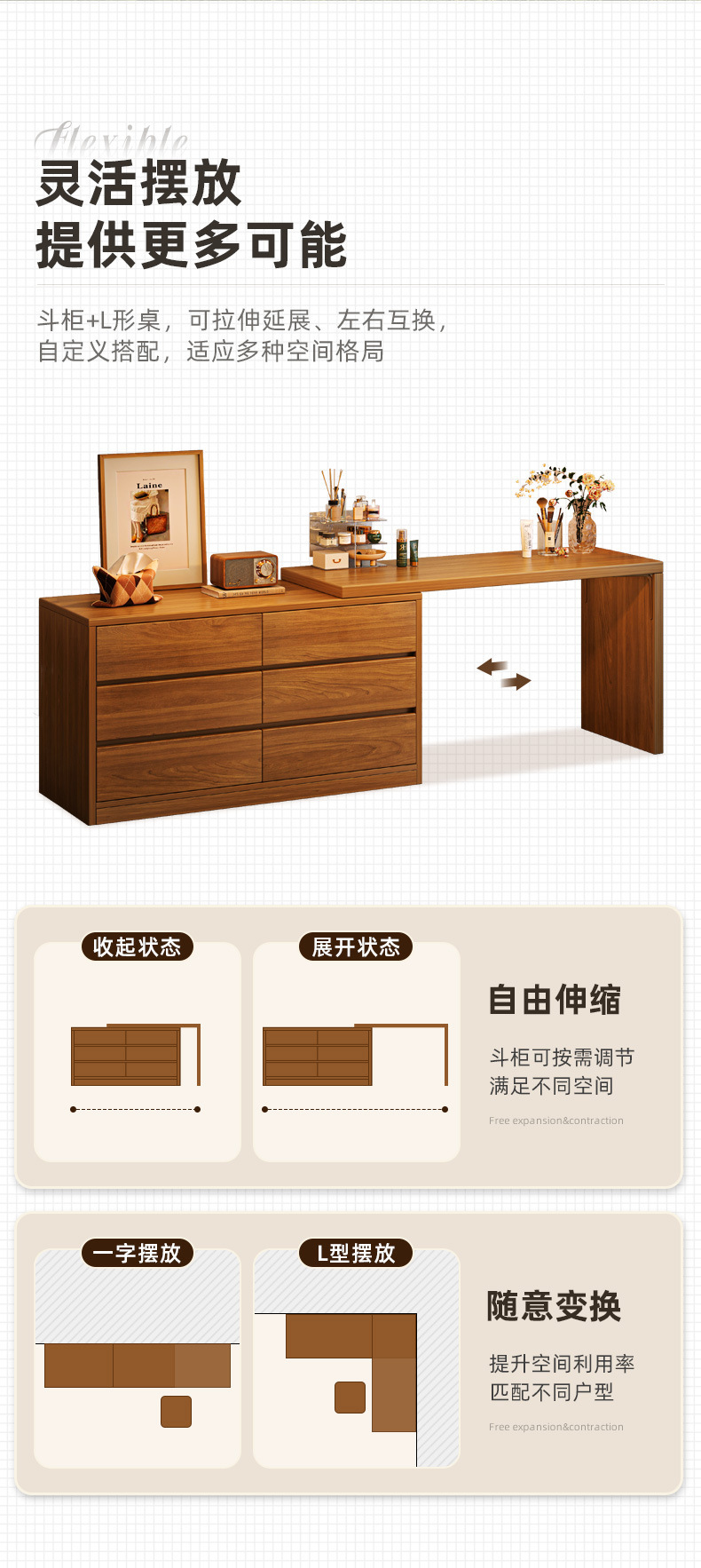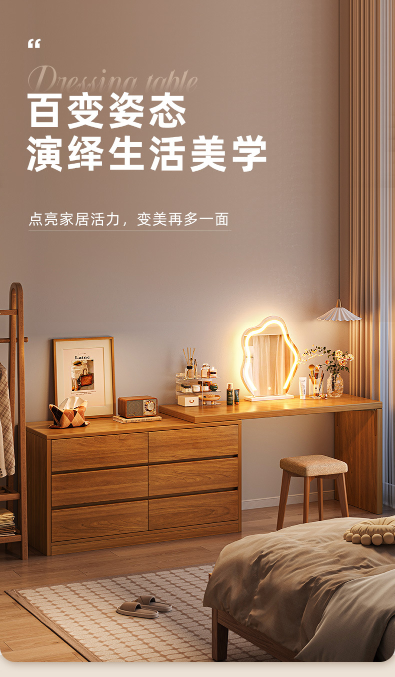 实木梳妆台卧室现代简约床尾斗柜化妆台一体收纳柜化妆桌带柜子