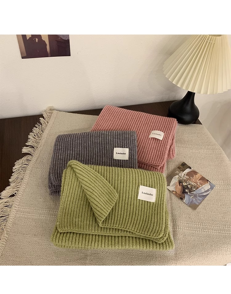 한국 스타일 Ins 다목적 소프트 울 스카프 여성 겨울 2024 신학생 두꺼운 따뜻한 니트 작은 스카프
