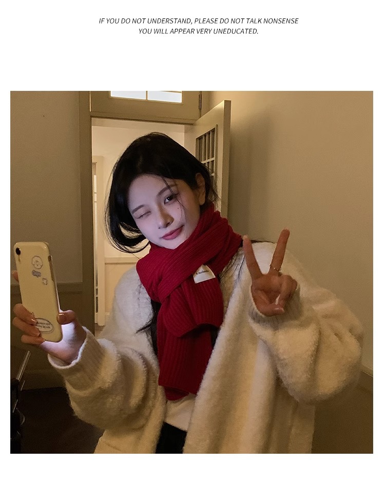 한국 스타일 Ins 다목적 소프트 울 스카프 여성 겨울 2024 신학생 두꺼운 따뜻한 니트 작은 스카프스토어 가기