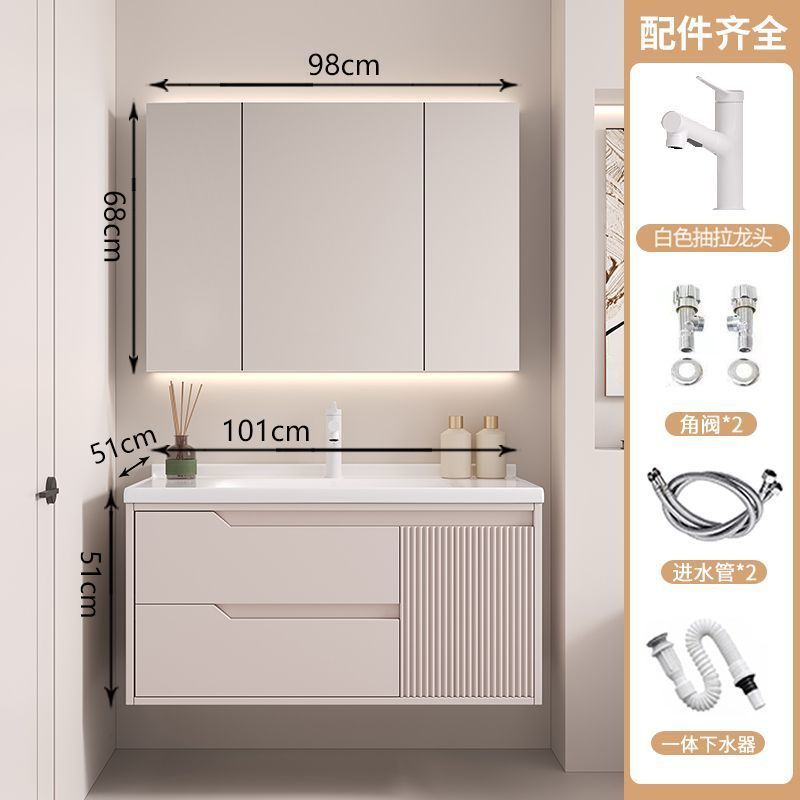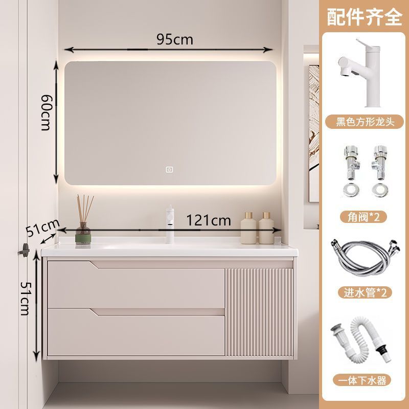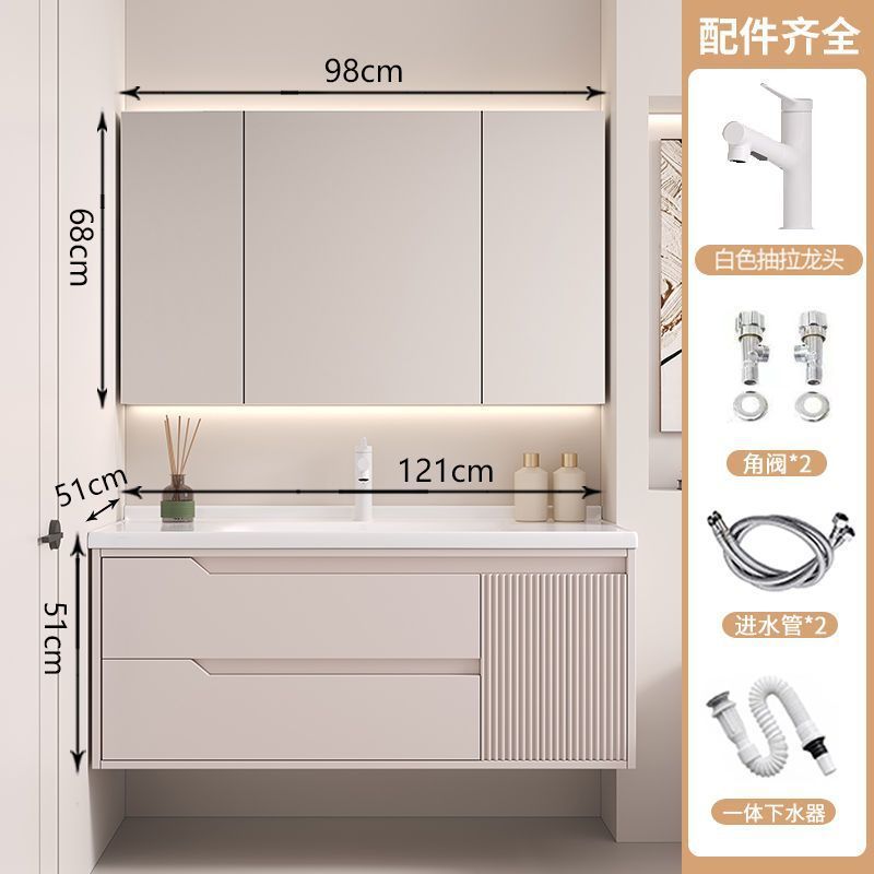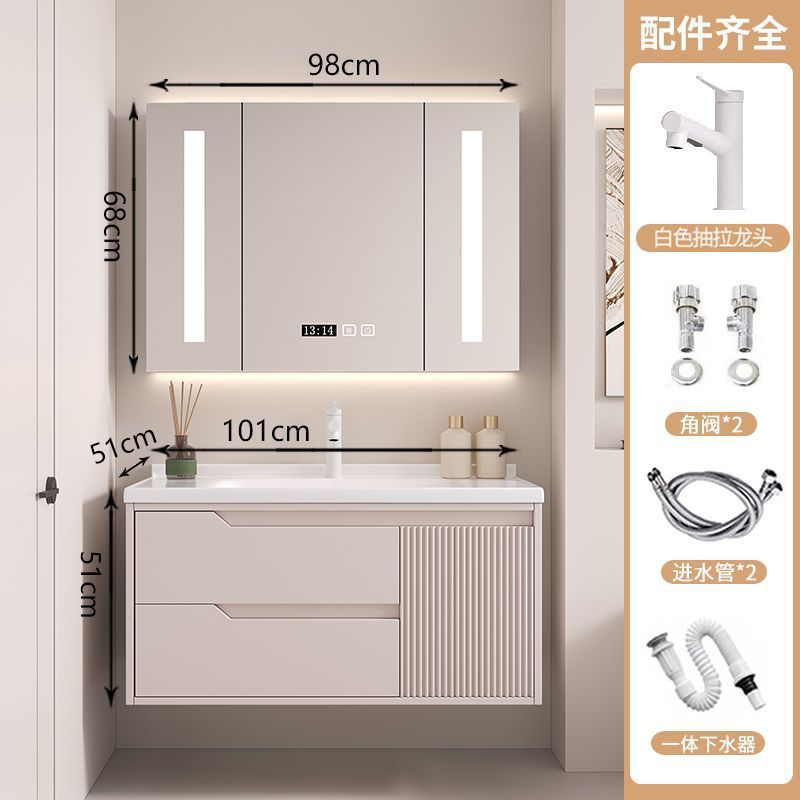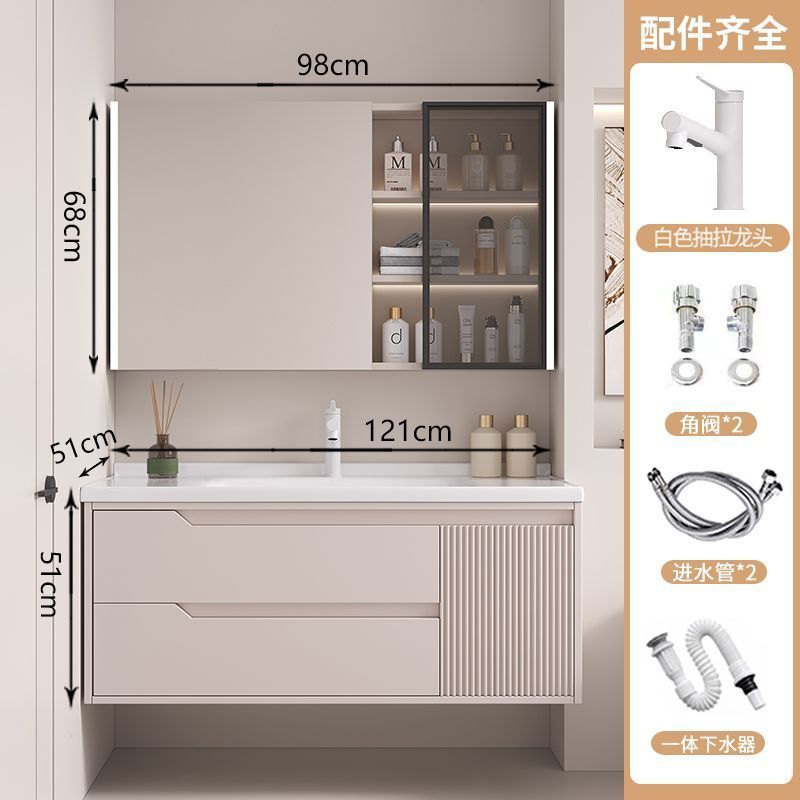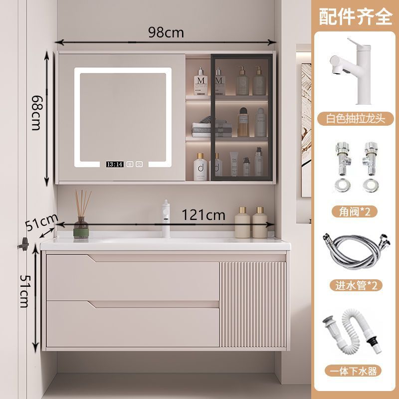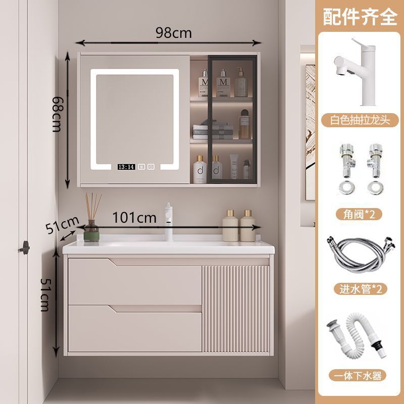 • 뷰티 스토리지 랙, 선반 램프 거울 캐비닛, 수도꼭지가 포함된 110cm 세라믹 일체형 세면대