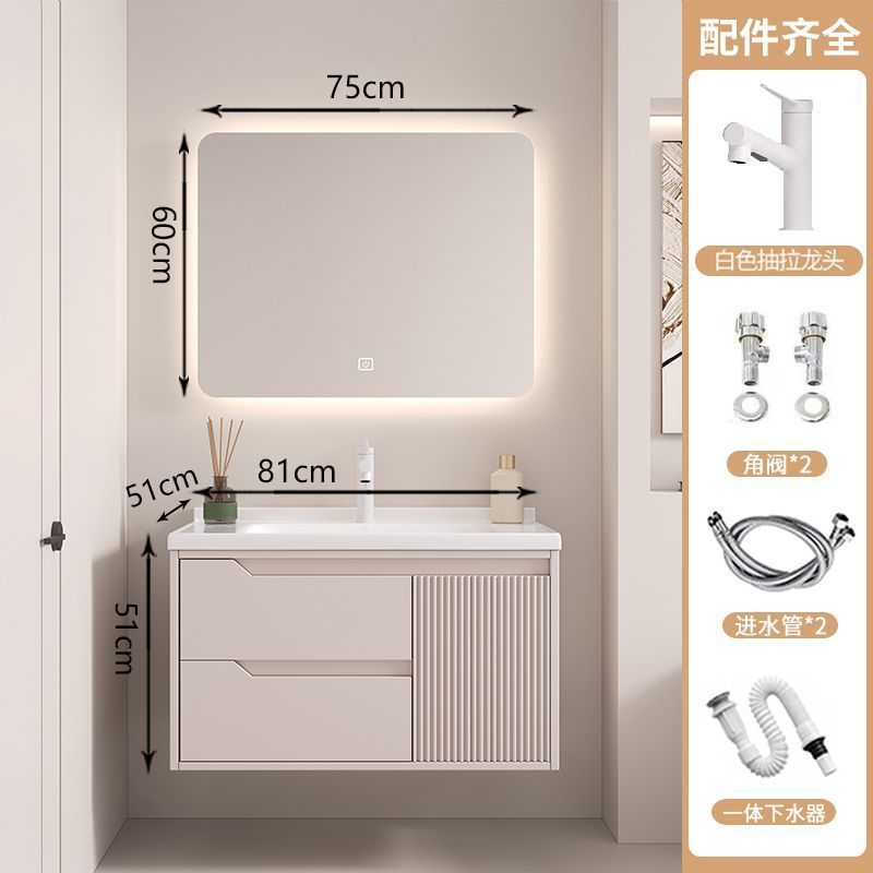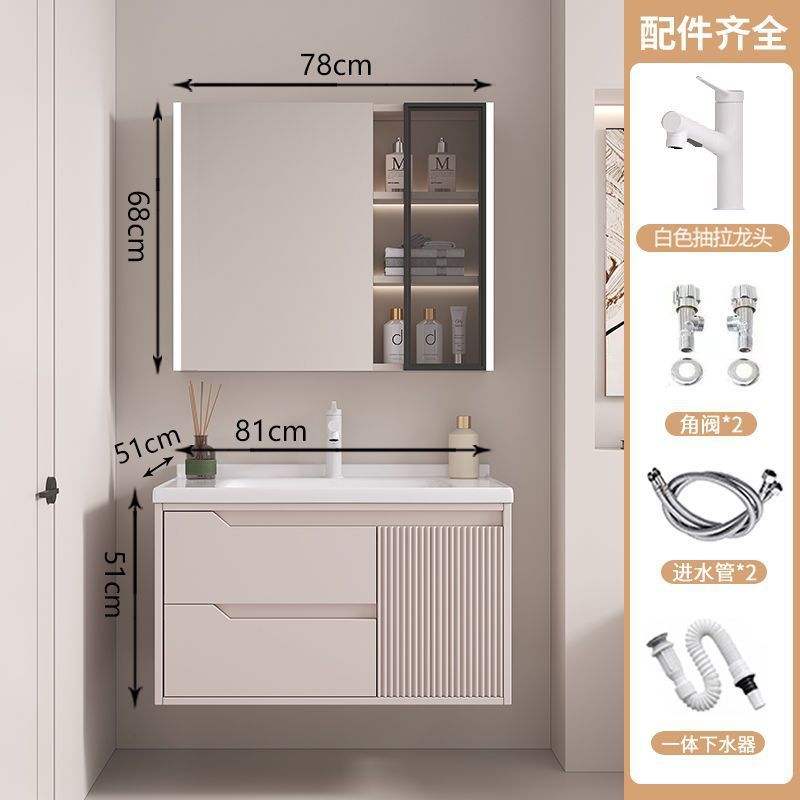 • 뷰티 스토리지 랙, 선반 램프 거울 캐비닛, 수도꼭지가 포함된 80cm 세라믹 일체형 세면대