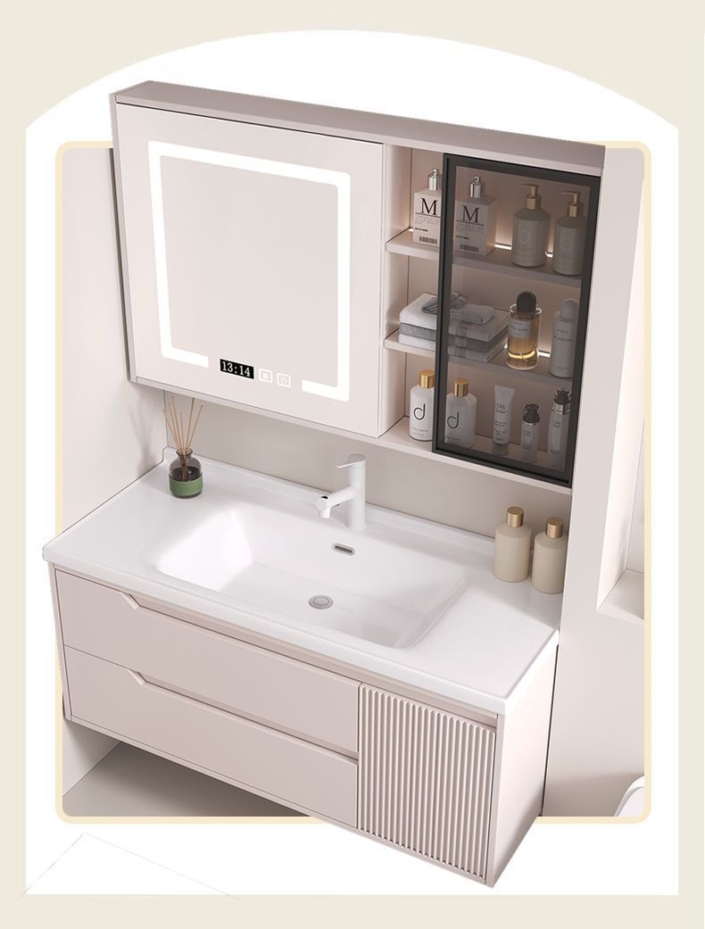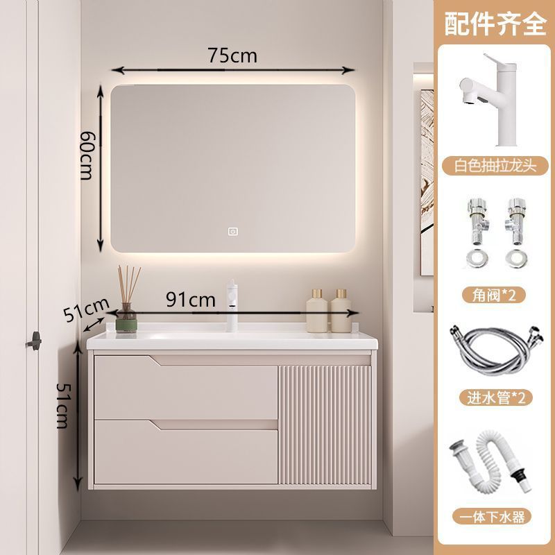 • 뷰티 스토리지 랙, 선반 램프 거울 캐비닛, 수도꼭지가 있는 90cm 세라믹 일체형 세면대