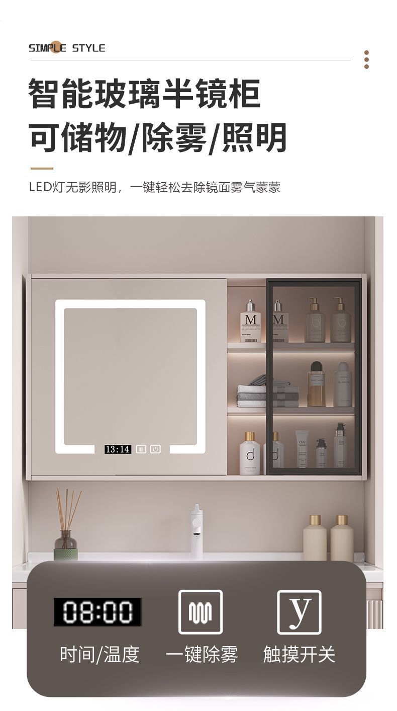 • 스마트 풀 미러 캐비닛, 수도꼭지가 포함된 80cm 세라믹 일체형 세면대