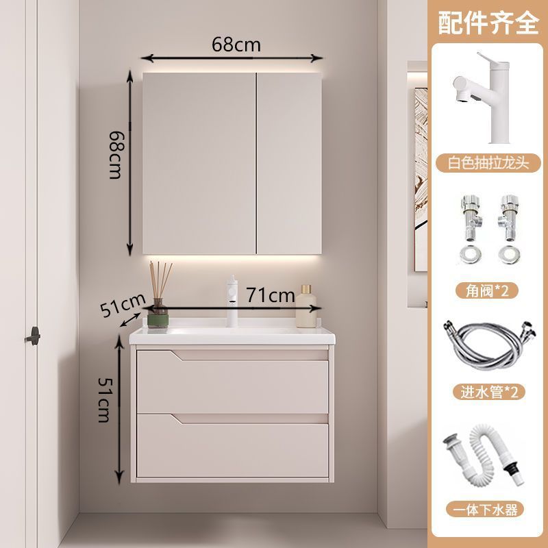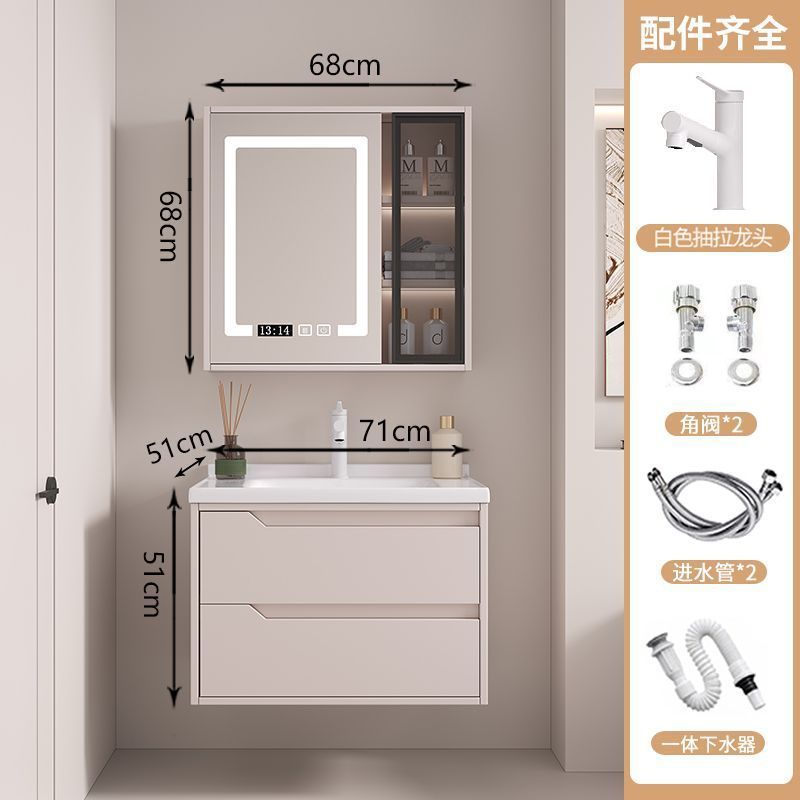 • 뷰티 스토리지 랙, 선반 램프 거울 캐비닛, 수도꼭지가 포함된 70cm 세라믹 일체형 세면대