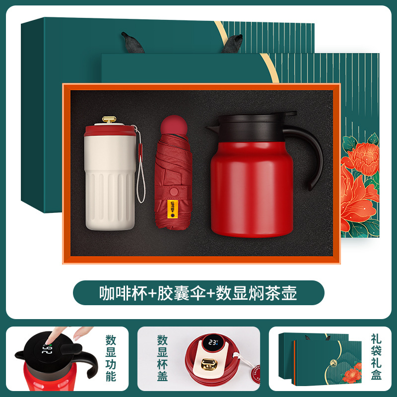 • 빨간 스튜 찻주전자 + 디지털 디스플레이 바운스 컵 + 캡슐 우산
