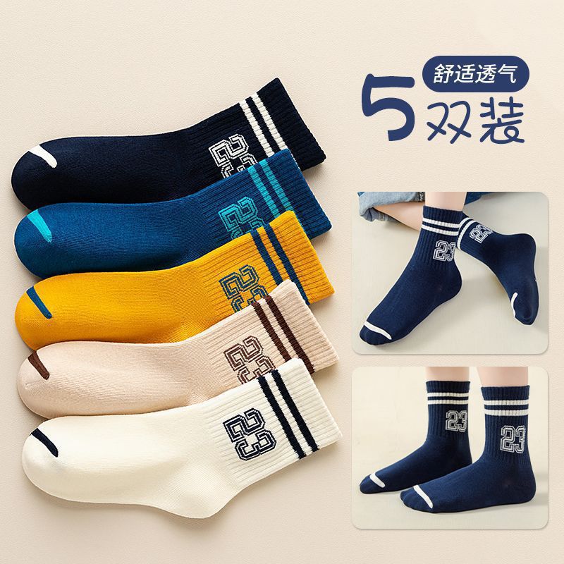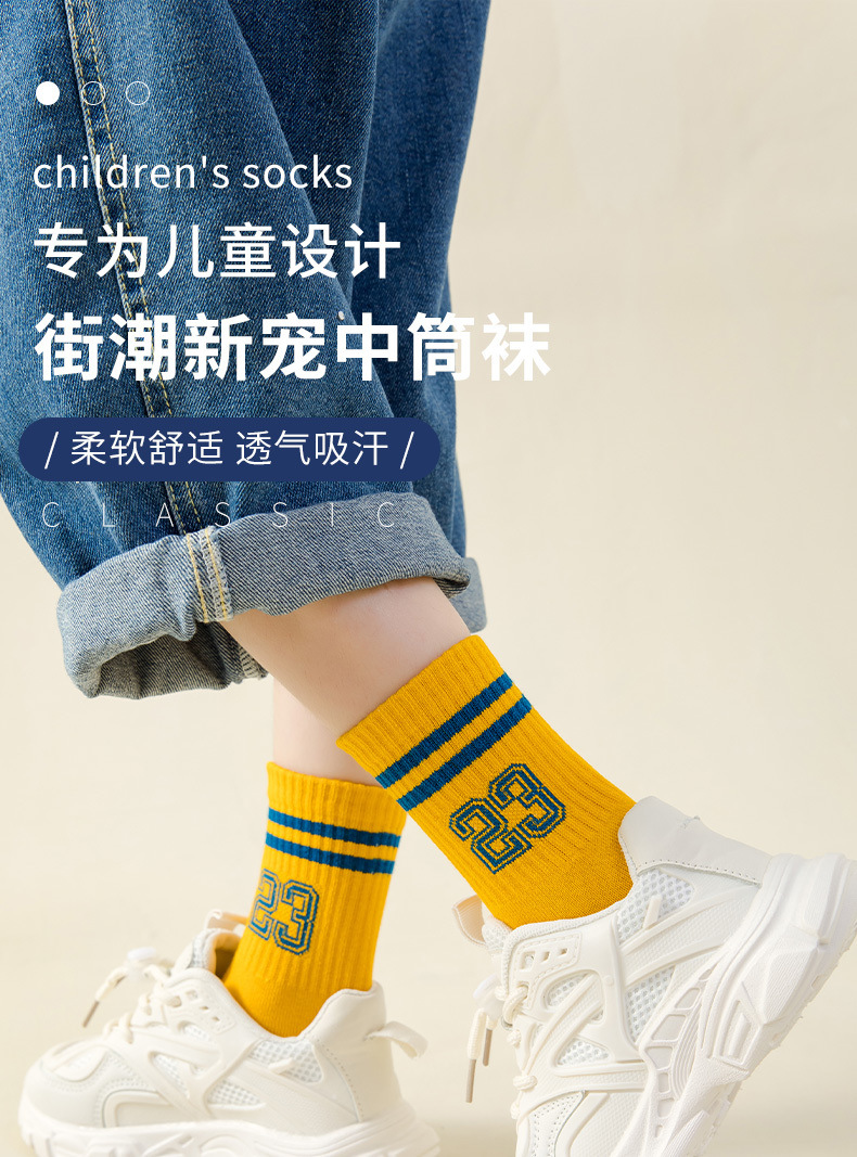 소년을위한 24 개의 새로운 스타일 중간 길이 양말 가을을위한 한국식 스포츠 유행 양말 중장 어린이 가을 및 겨울 학생 양말스토어 가기