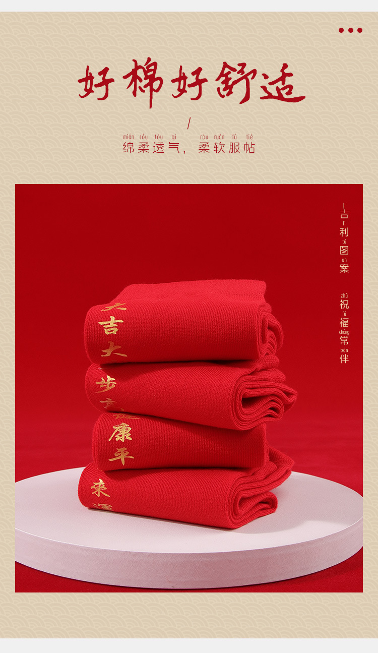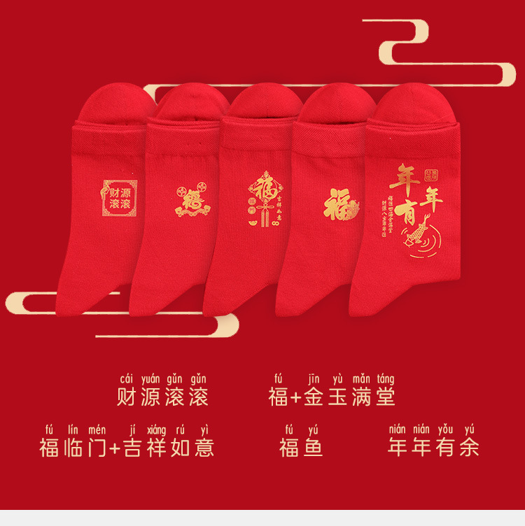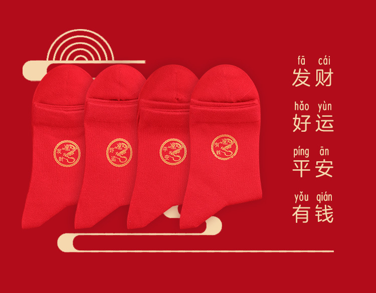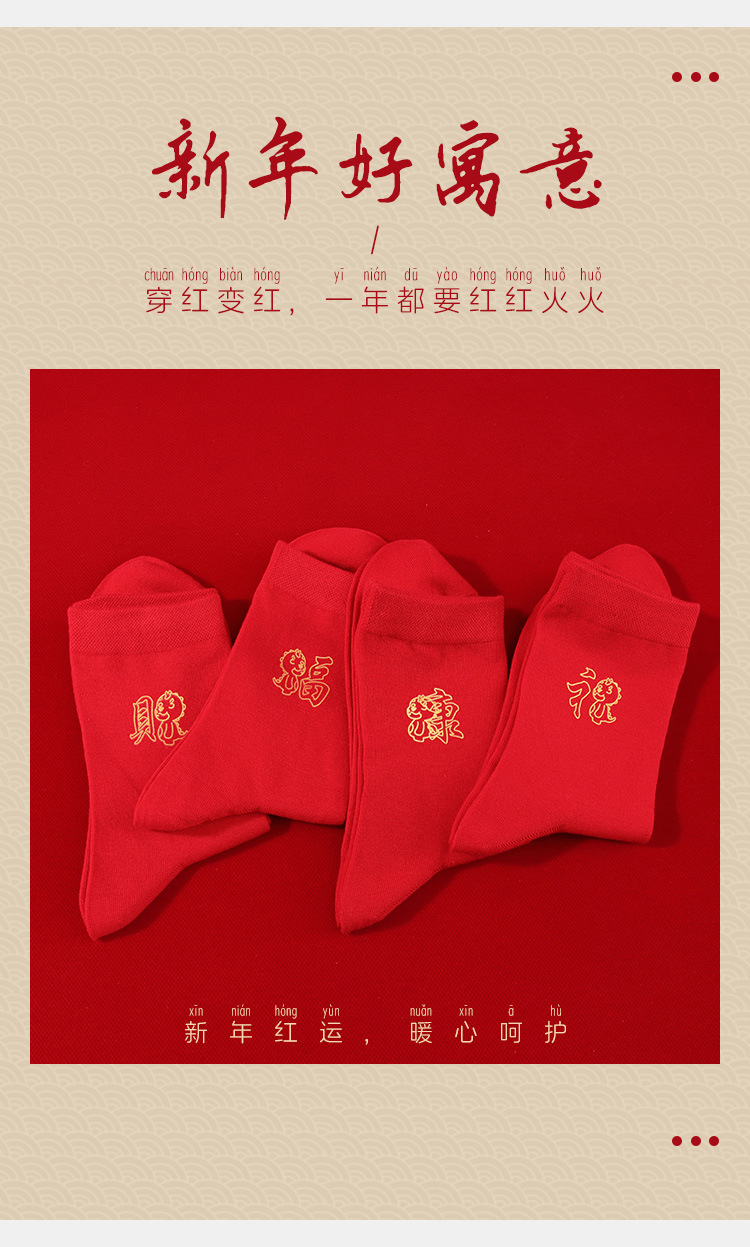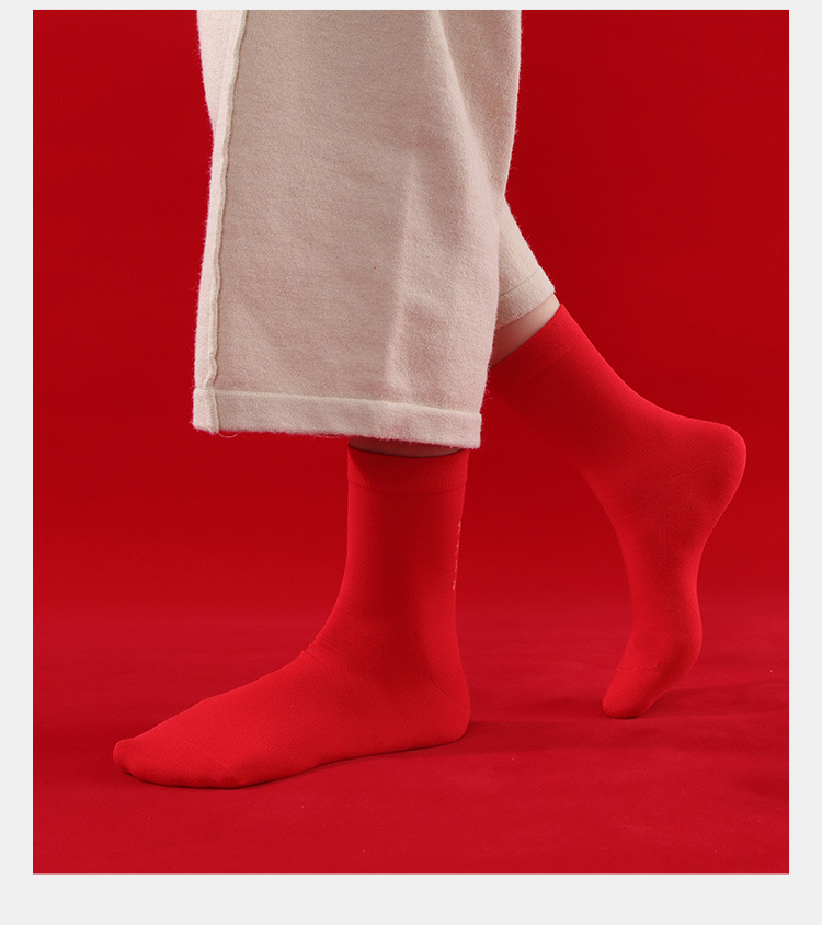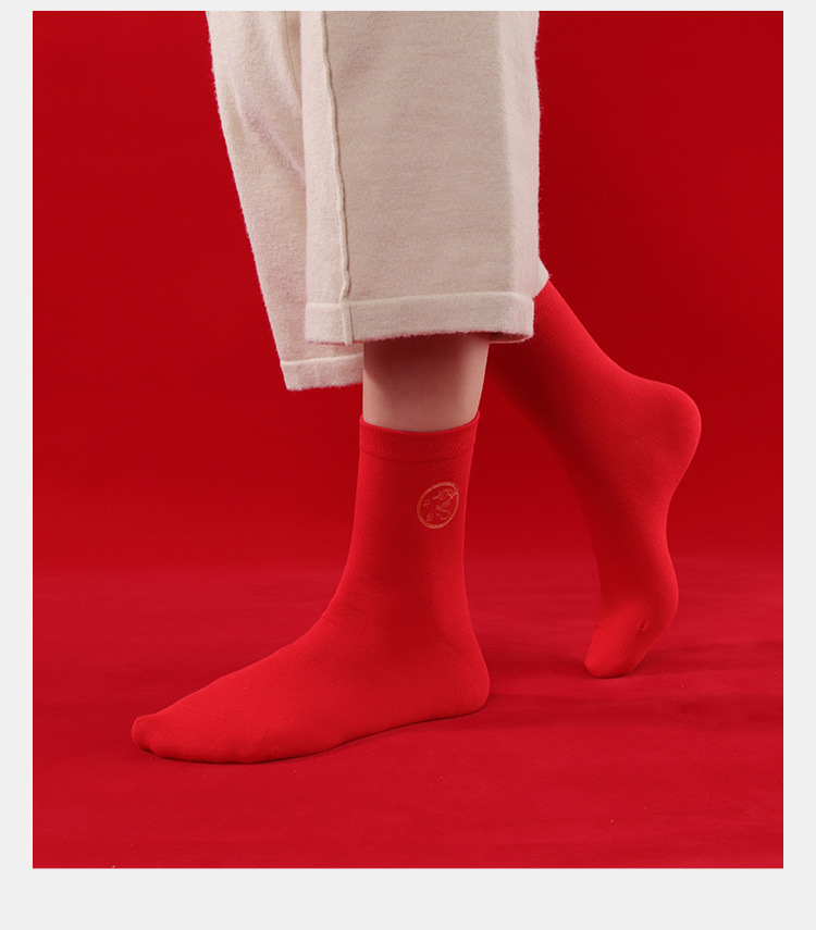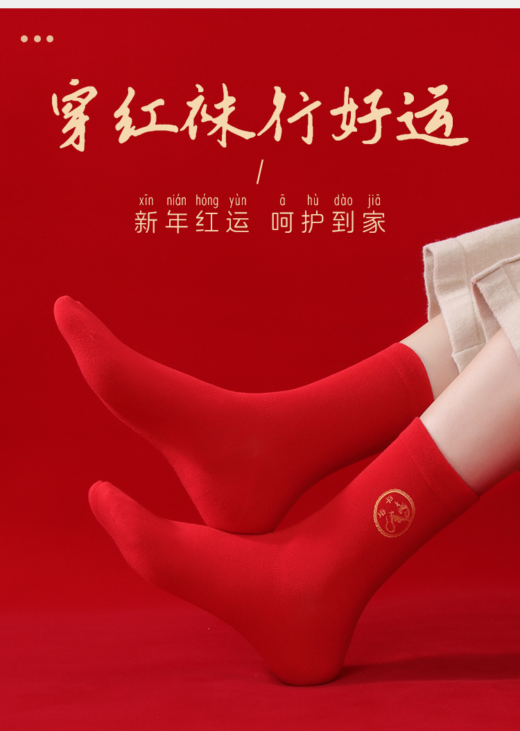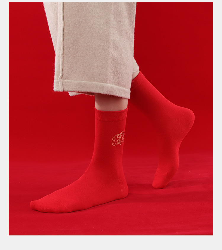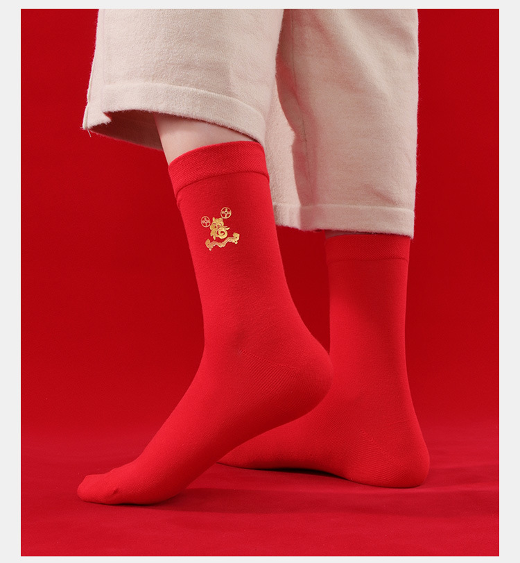 홍운 양말 올해 빨간 양말 신년 커플 결혼 선물 2024 가을 겨울 남자 스타킹 양말스토어 가기