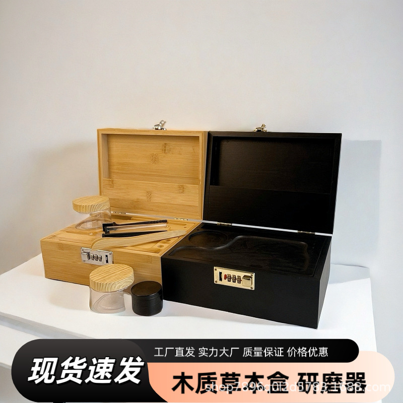 대나무 나무 그라인더 저장 상자 사각형 나무 담배 담배 저장 상자 플립 형 나무 담배스토어 가기