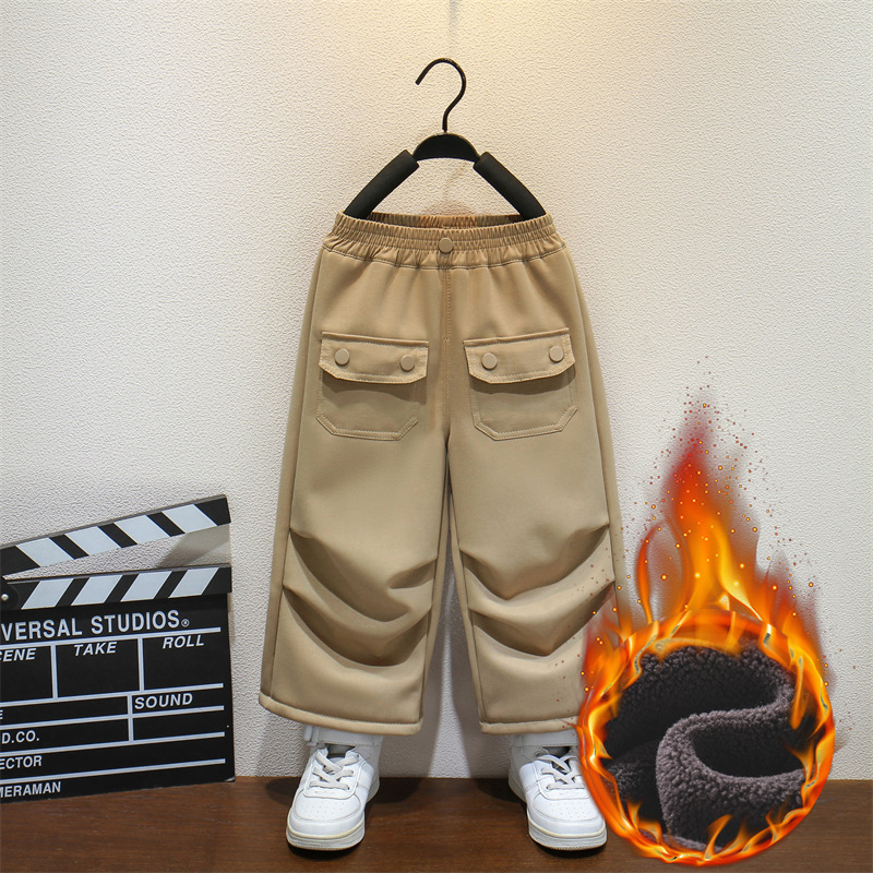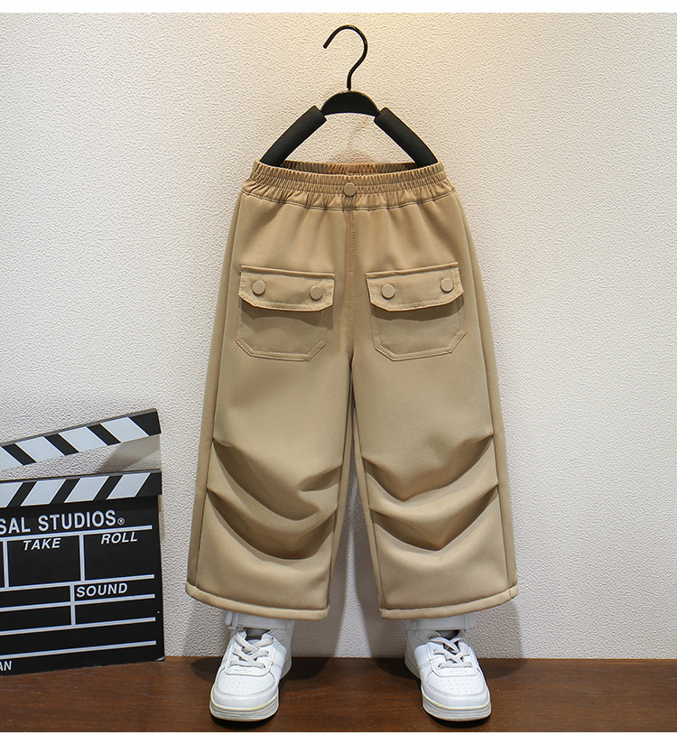 여자 한국 스타일 주름 바지 기모 겨울 의류 새로운 어린이 포켓 캐주얼 바지 아기 바지 패션스토어 가기