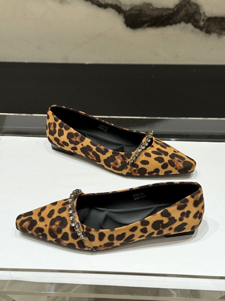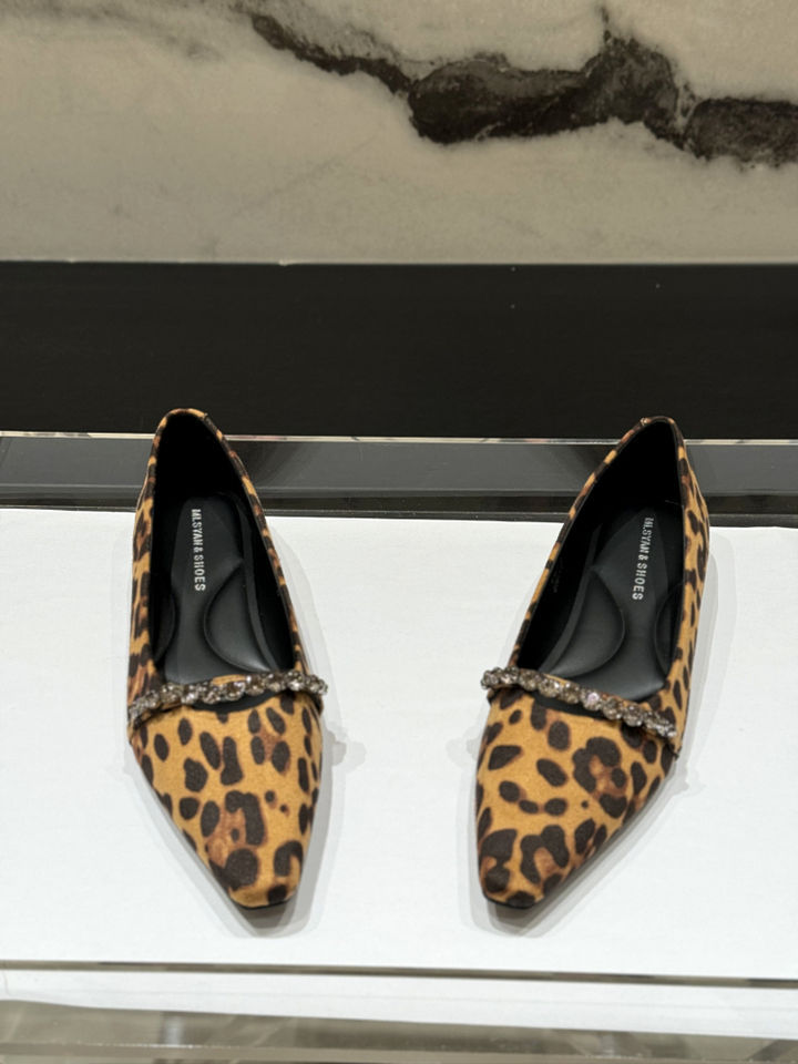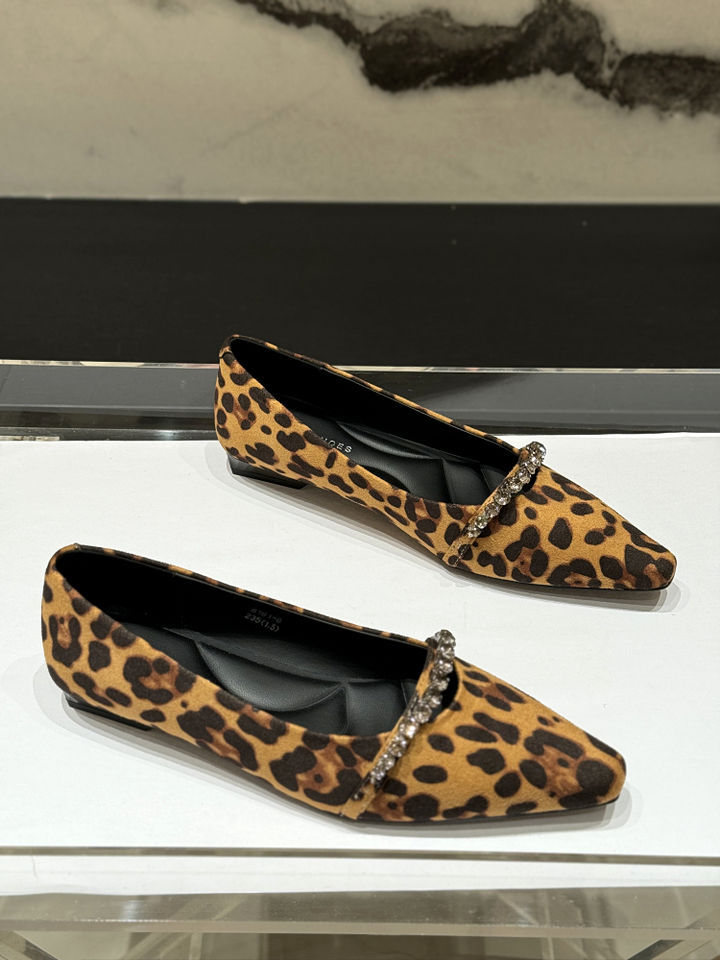 뾰족한 레트로 스웨이드 라인스톤 빈 신발 여성의 2024 년 새로운 가을 인터넷 연예인 플랫 레오파드 무늬 올 매치 우아한 싱글 레이어 신발스토어 가기