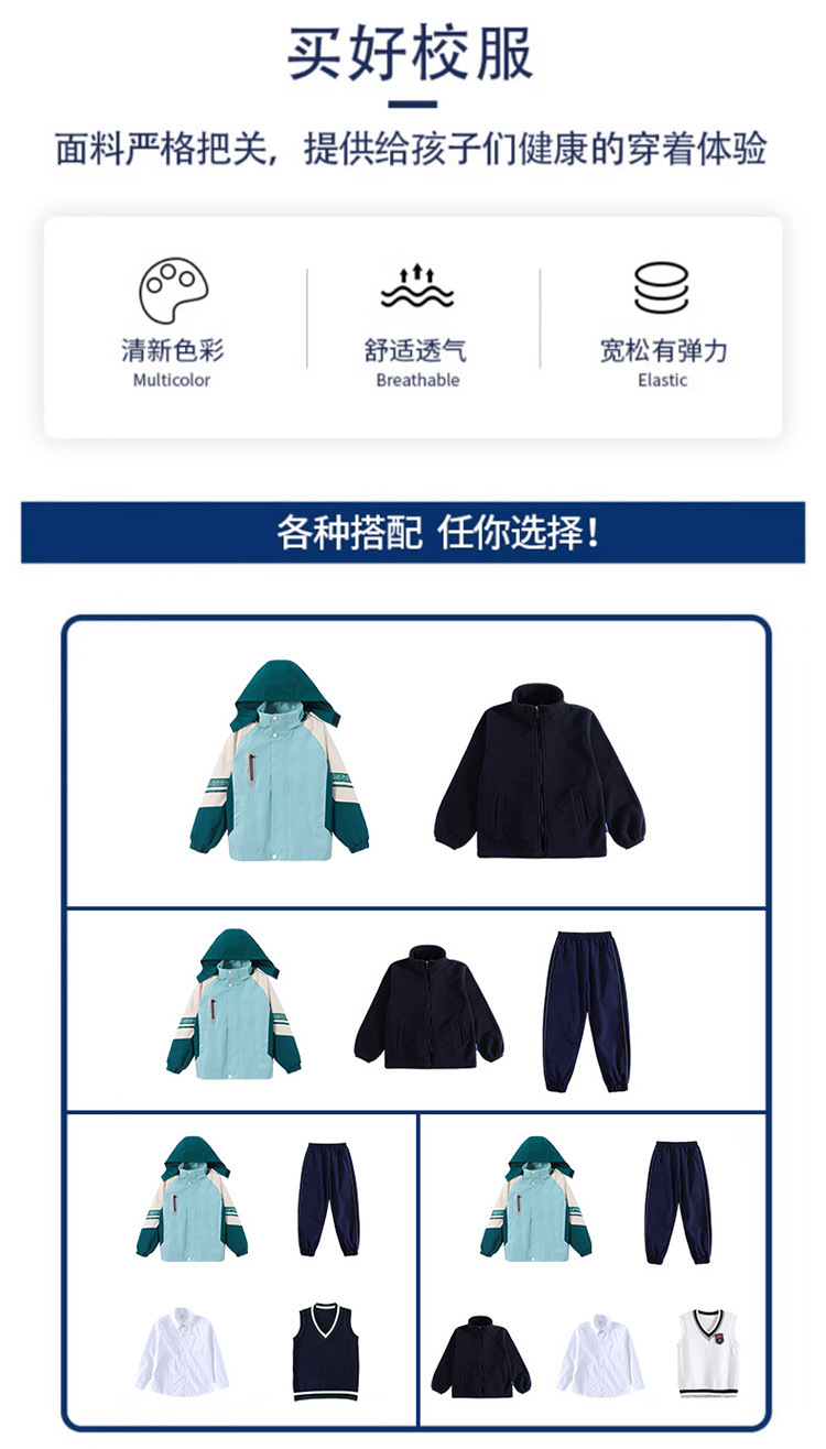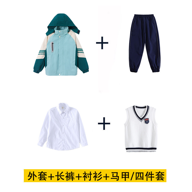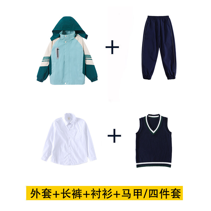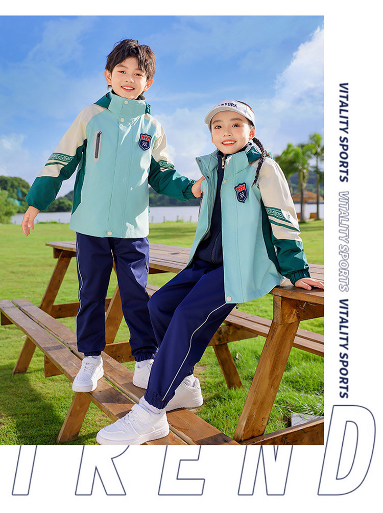 초등학교 학생을위한 분리 가능한 수업 옷 3 조각 가을 겨울 학교 유니폼 3 대 1 소박한 옷 스포츠 세트 유치원 정원 옷스토어 가기