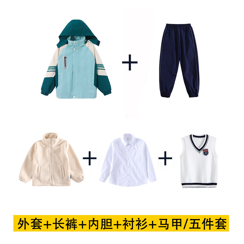 초등학교 학생을위한 분리 가능한 수업 옷 3 조각 가을 겨울 학교 유니폼 3 대 1 소박한 옷 스포츠 세트 유치원 정원 옷
