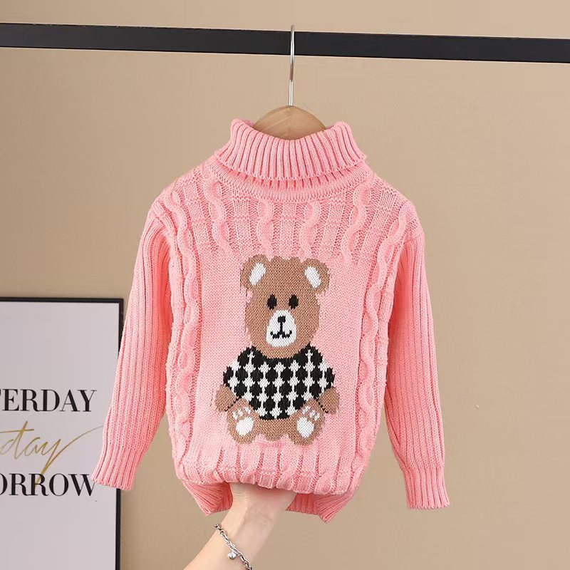 어린이 스웨터 2024 가을과 겨울 새로운 중소 긴 소매 만화 터틀넥 스웨터 소년 소녀스토어 가기