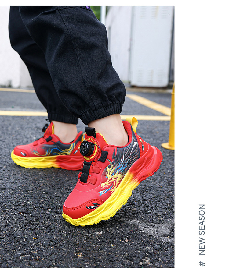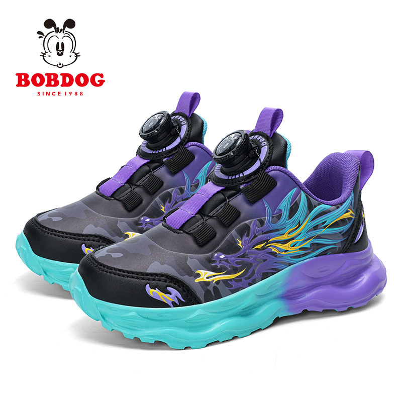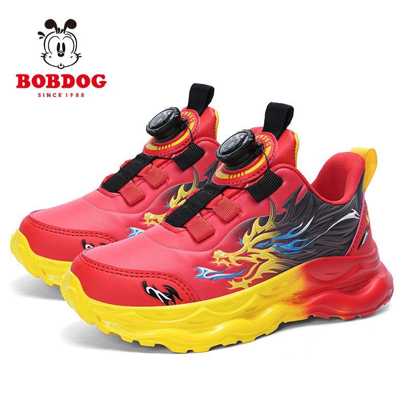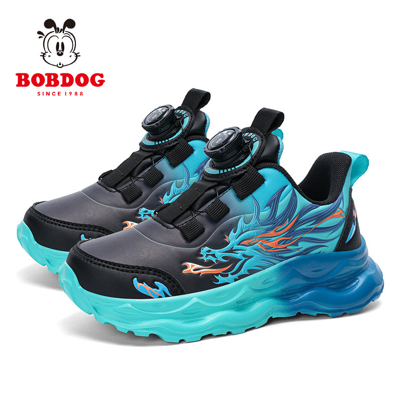 바부 콩 2024 가을 새로운 어린이 운동화 가죽 통기성 대형 어린이 운동화 회전 버클 남성 신발