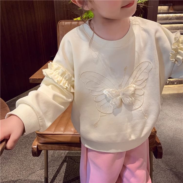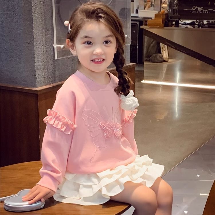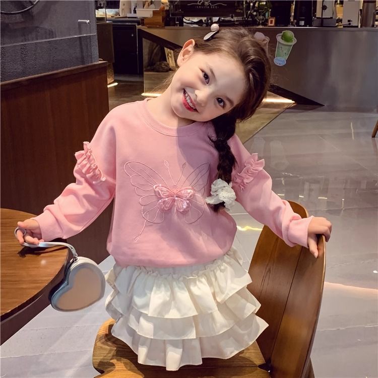 여자 운동복 봄, 가을 2025 새로운 한국 스타일 외국 스타일 어린이 나비 유행 긴팔 탑 중대형 어린이 소녀스토어 가기