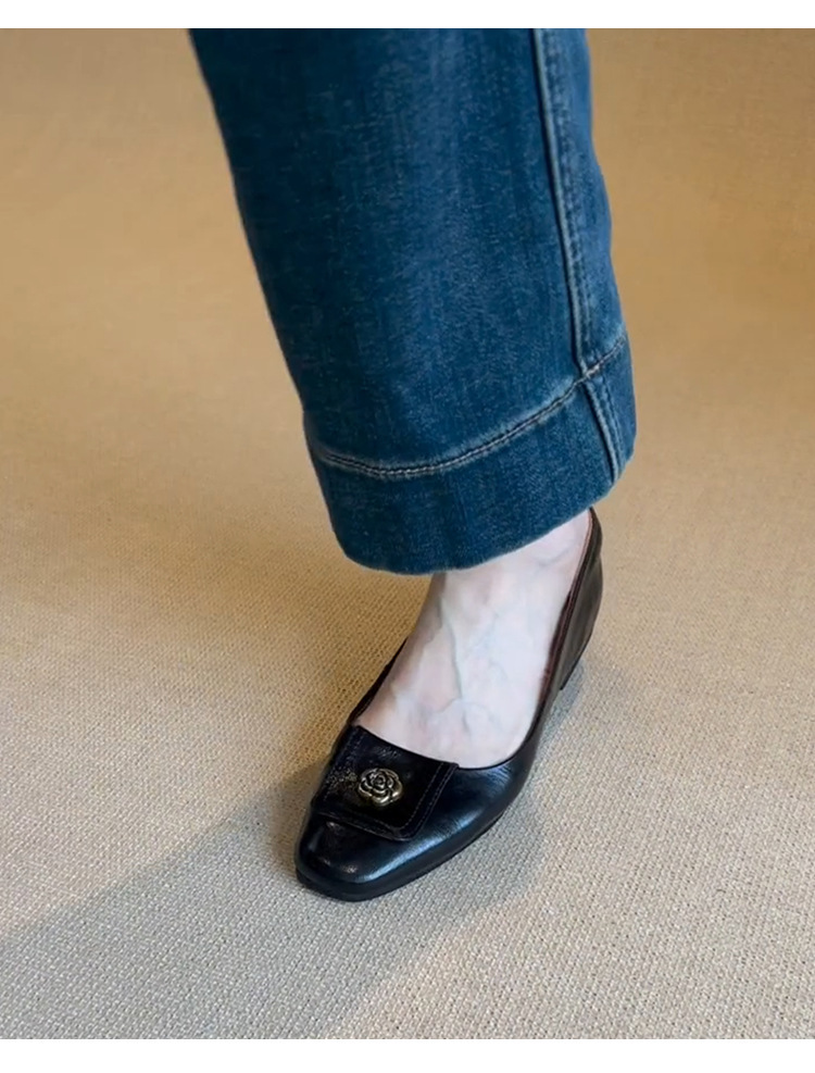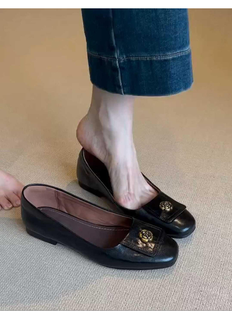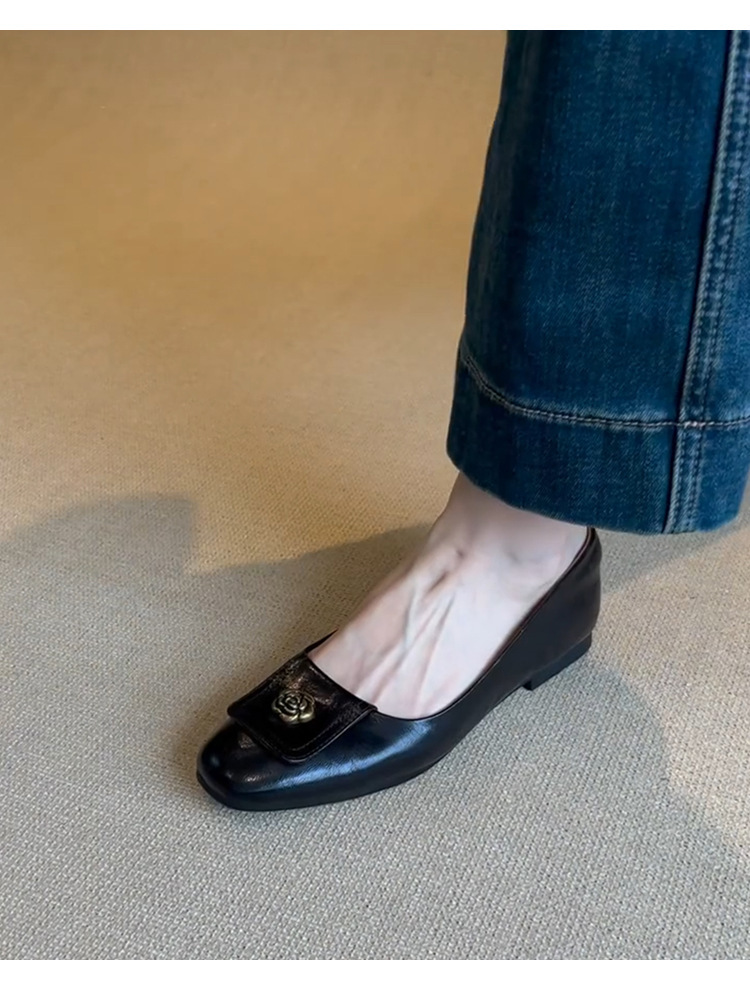 니치 스퀘어 헤드 디자인 신발 여성 2024 년 봄과 가을 새로운 레트로 카멜리아 통근 올 매치 얕은 입 작업 신발스토어 가기