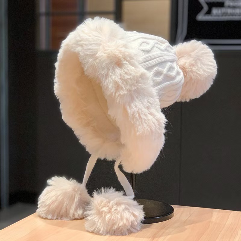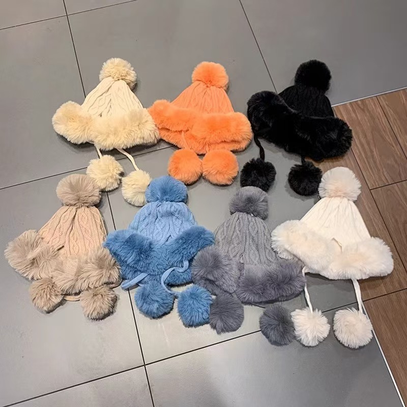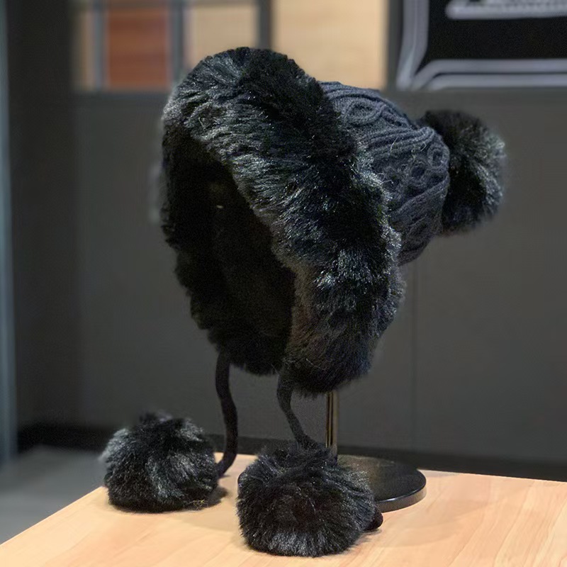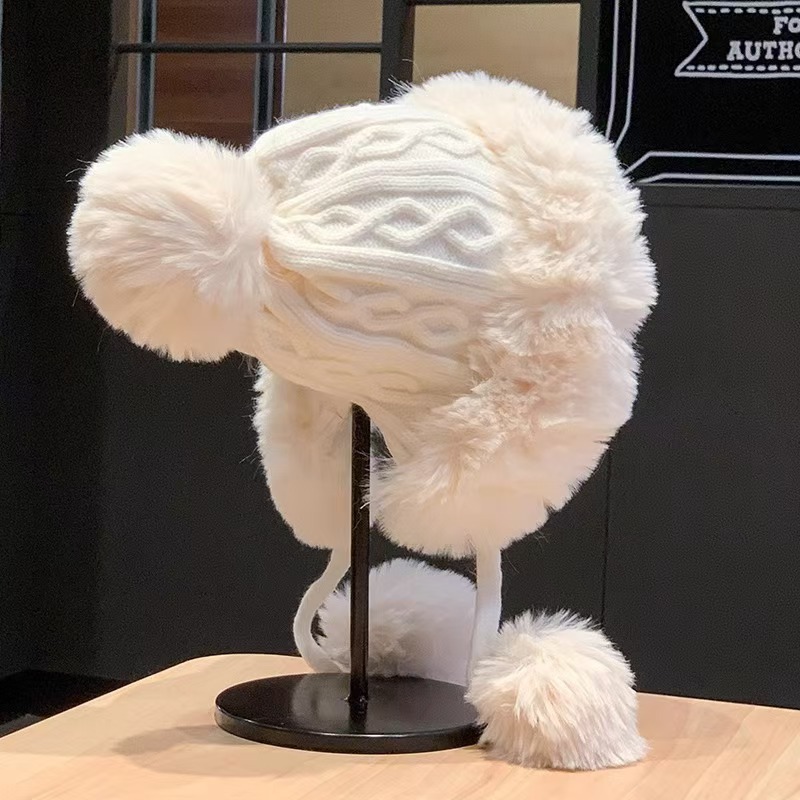 가을과 겨울 눈 모조 토끼 모피 밀짚 모자 큰 가슴 패션 하이 엔드 기모 모피 볼 모자 양모 귀 보호 따뜻한 니트 모자스토어 가기