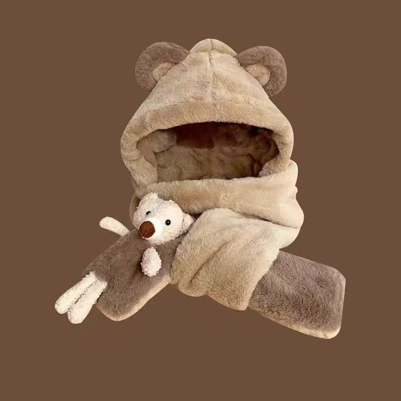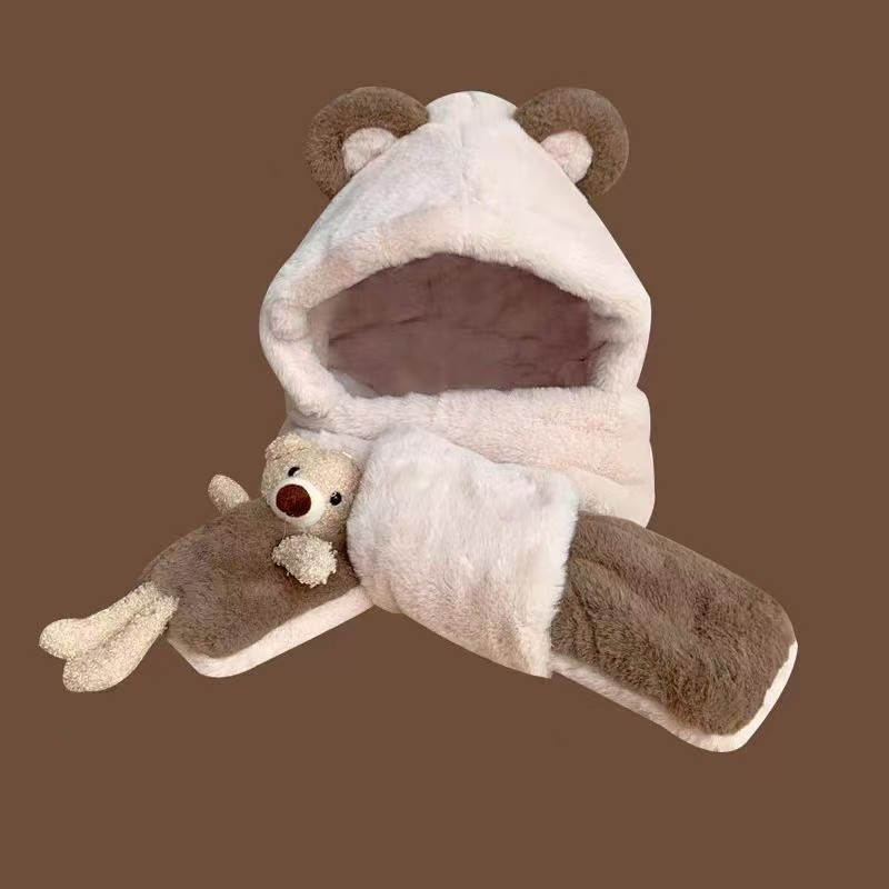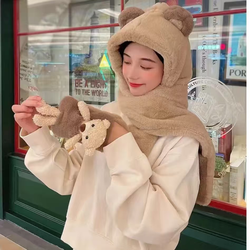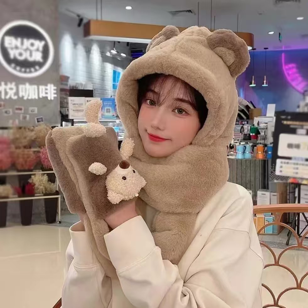 곰 3 피스 스카프 장갑 올인원 야외 냉방 방풍 방동 따뜻한 귀 보호 두꺼운 판 올 매치 모자스토어 가기