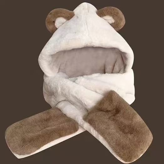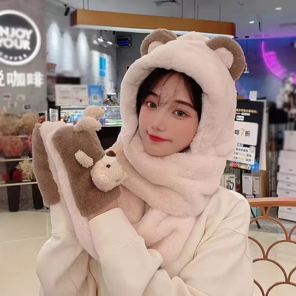 곰 3 피스 스카프 장갑 올인원 야외 냉방 방풍 방동 따뜻한 귀 보호 두꺼운 판 올 매치 모자
