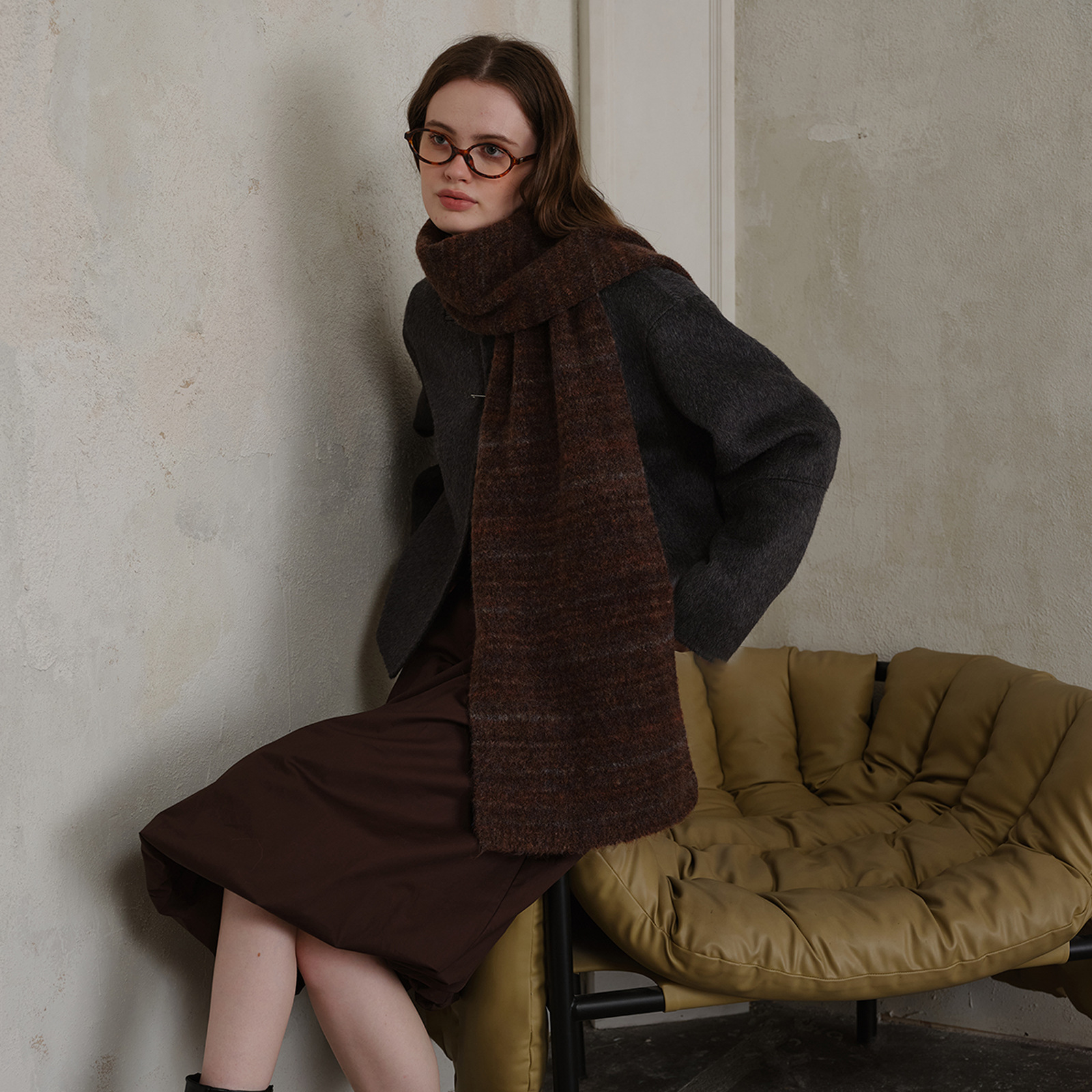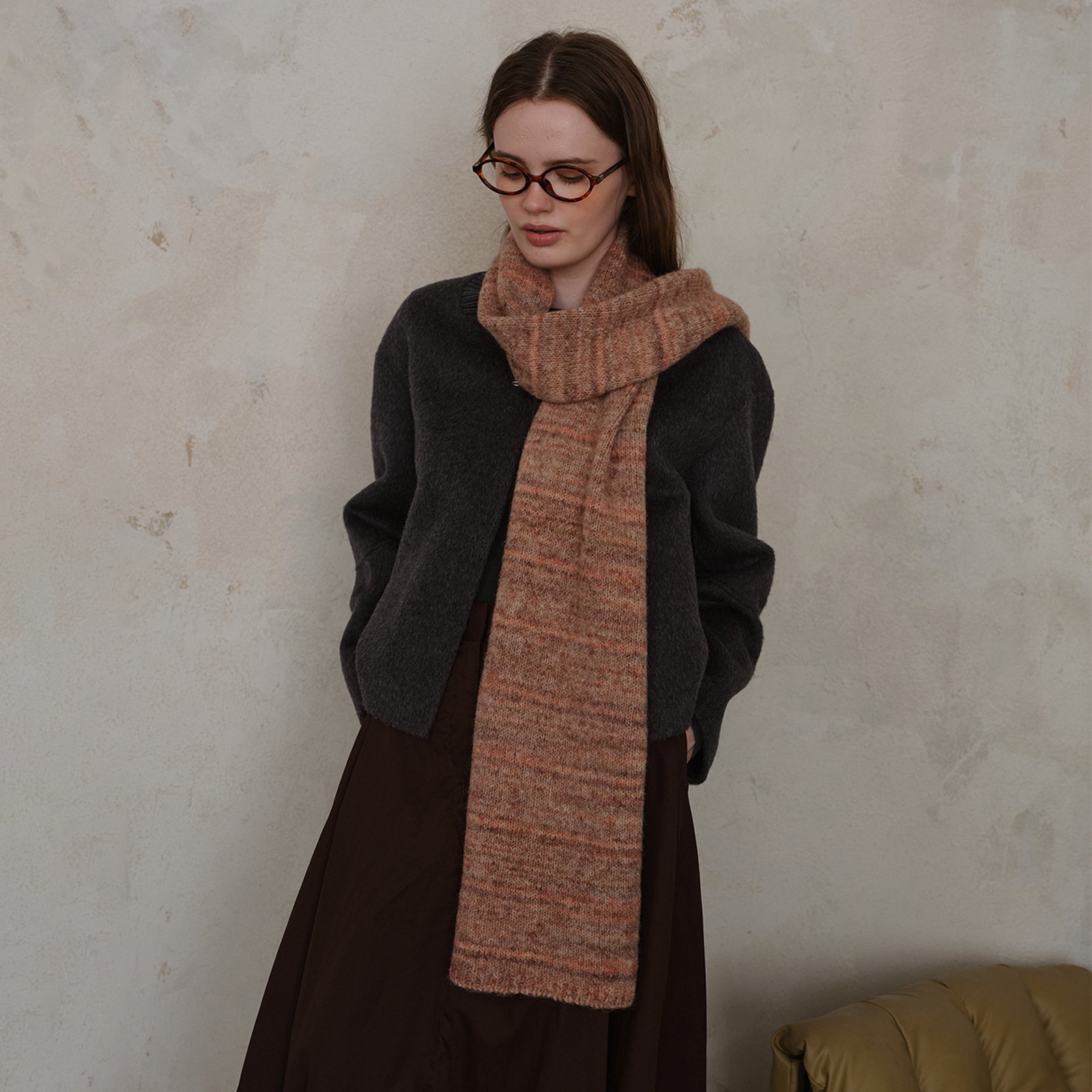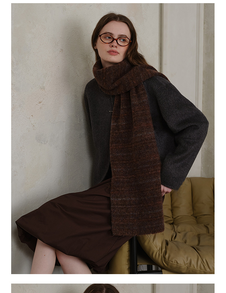 니치 레트로 분위기 화이트 버건디 따뜻한 양모 혼합 스카프 여성의 가을과 겨울 양모 니트 스카프 남성과 여성스토어 가기