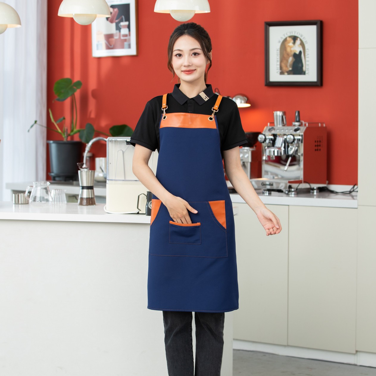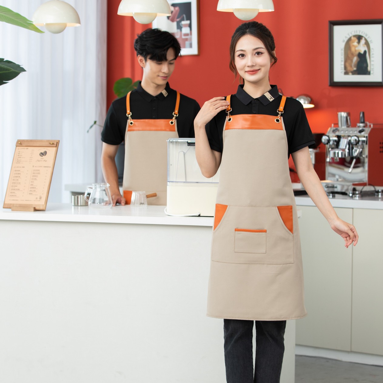 캔버스 작업복 그림 그리기 밀크티 가게 카페 케이터링 방수 앞치마 인쇄 남녀 공용 짧은 실용적인 민소매스토어 가기