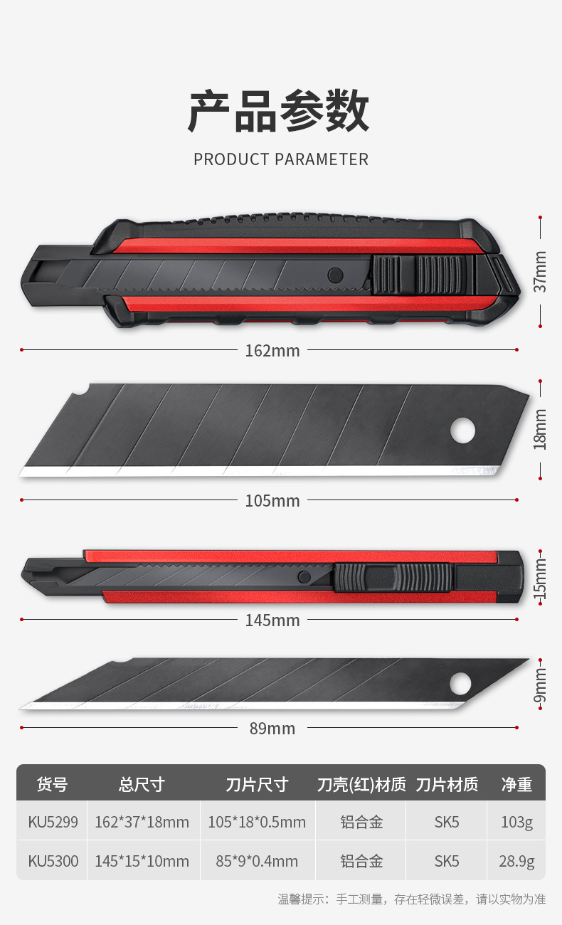 • KU5300 알루미늄 합금 유틸리티 나이프 9mm