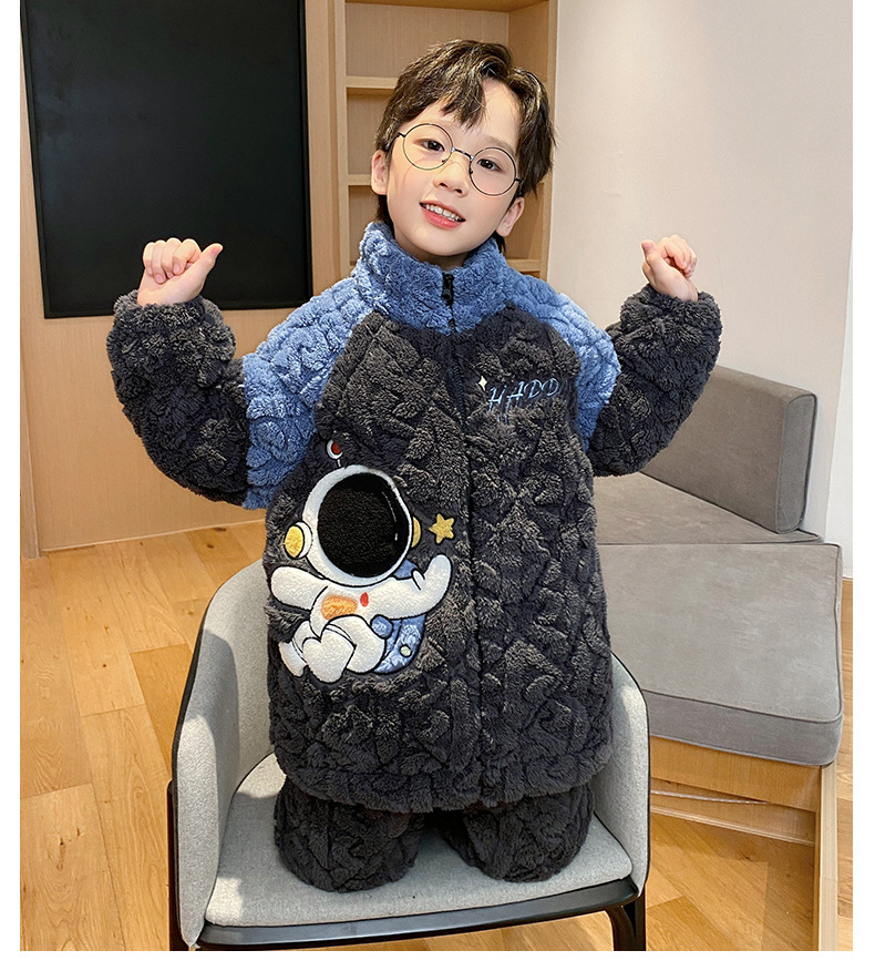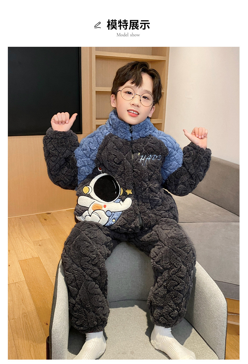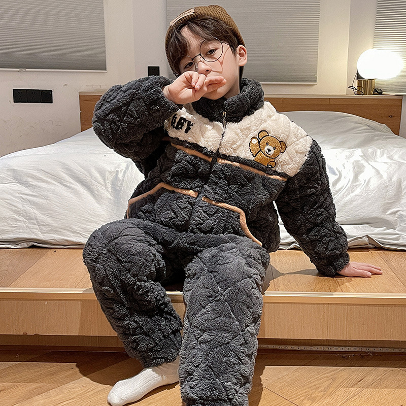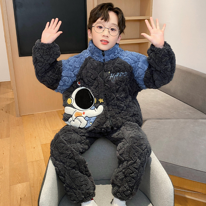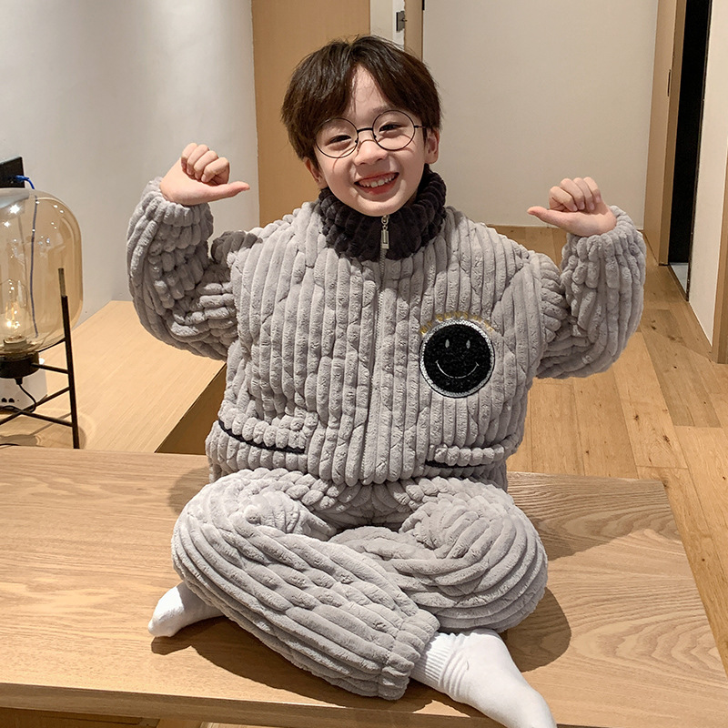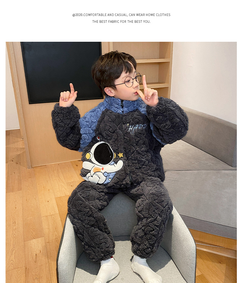 가을과 겨울 플러스 벨벳 패딩 면화 소년 잠옷 겨울 카디건 지퍼는 중소 및 대형 어린이 밖에서 착용 할 수 있습니다.스토어 가기