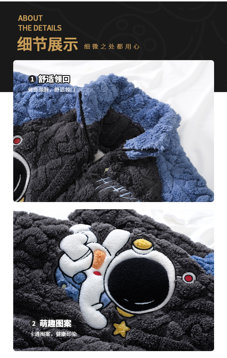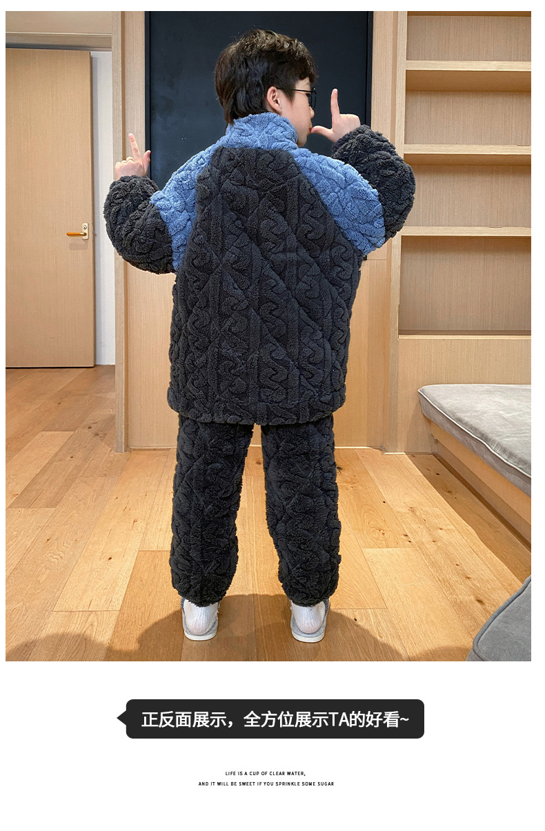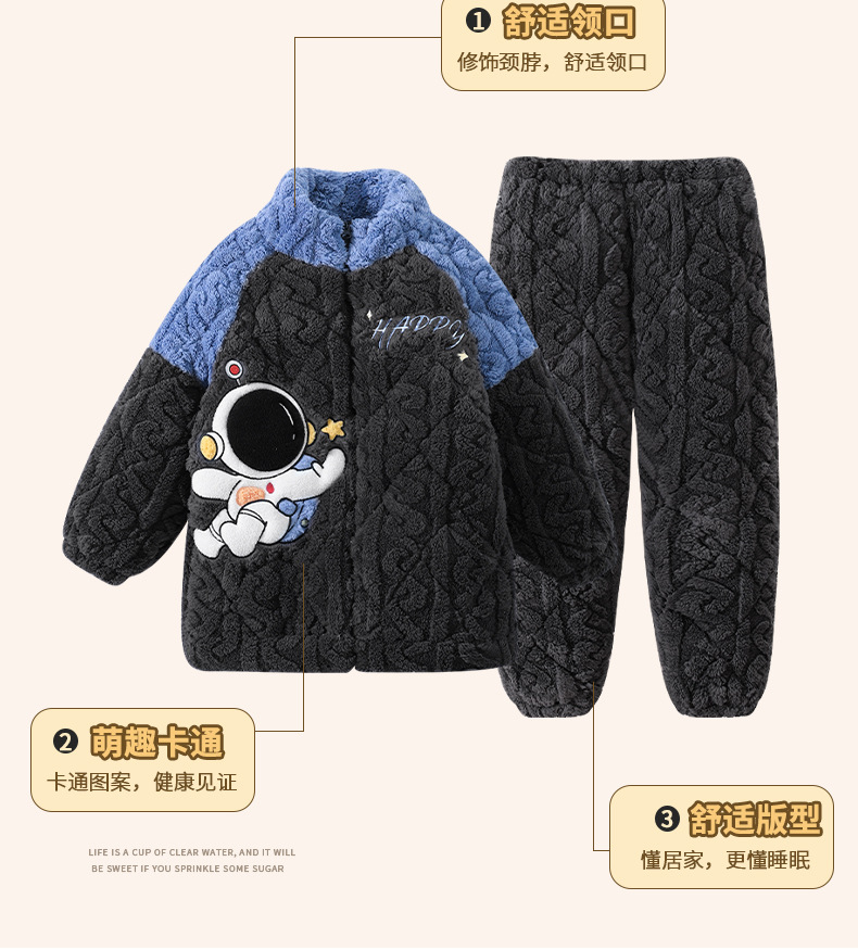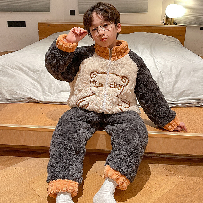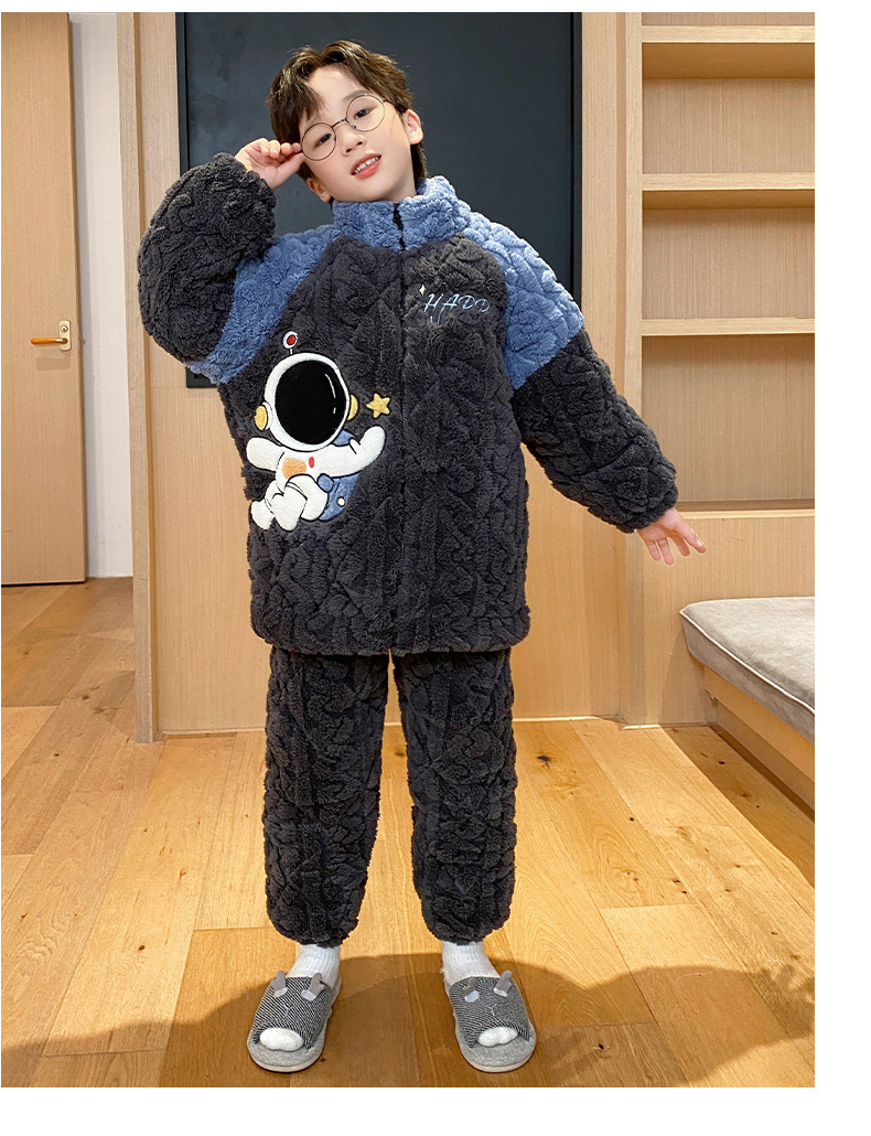 가을과 겨울 플러스 벨벳 패딩 면화 소년 잠옷 겨울 카디건 지퍼는 중소 및 대형 어린이 밖에서 착용 할 수 있습니다.스토어 가기
