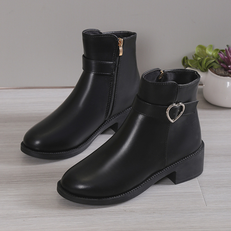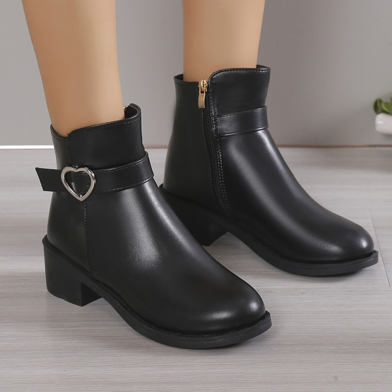 2024 가을과 겨울 새로운 두꺼운 뒤꿈치 여성 부츠 유럽과 미국의 벨트 버클 중년 및 노인 어머니 사이드 지퍼 패션 짧은 부츠