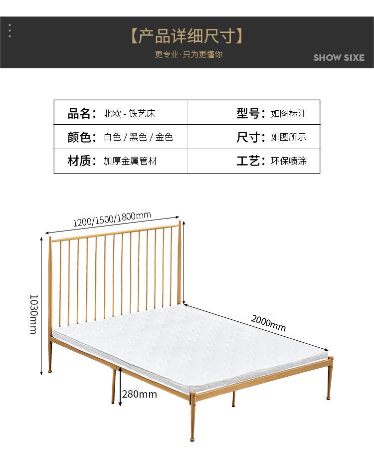 Lw0 아이언 침대 더블 아이언 프레임 침대 노르딕 간단한 인터넷 레드 프린세스 침대 아파트 침대 1 미터 1.2 미터 1.5 미터 1.8스토어 가기