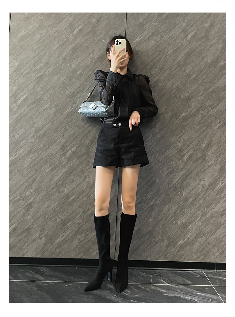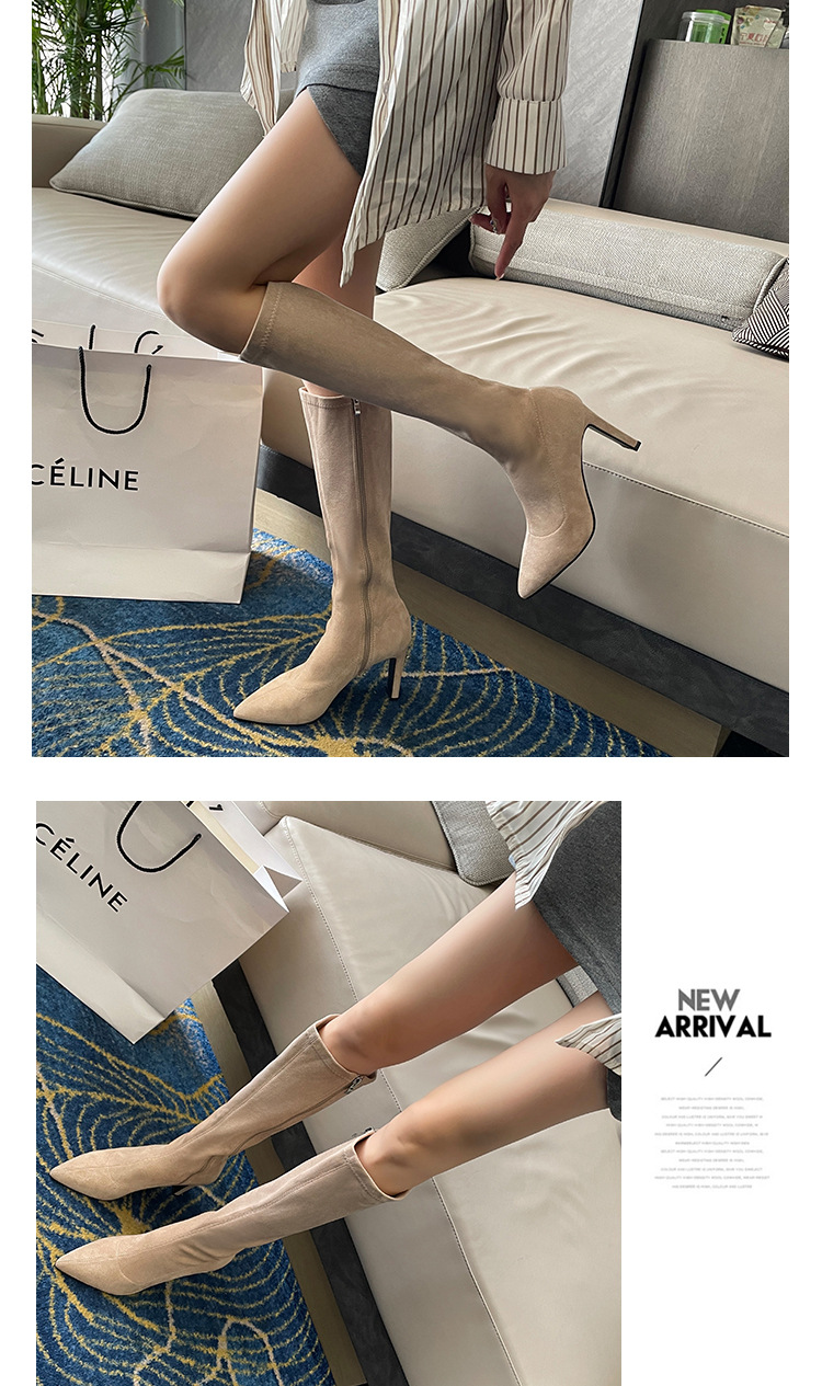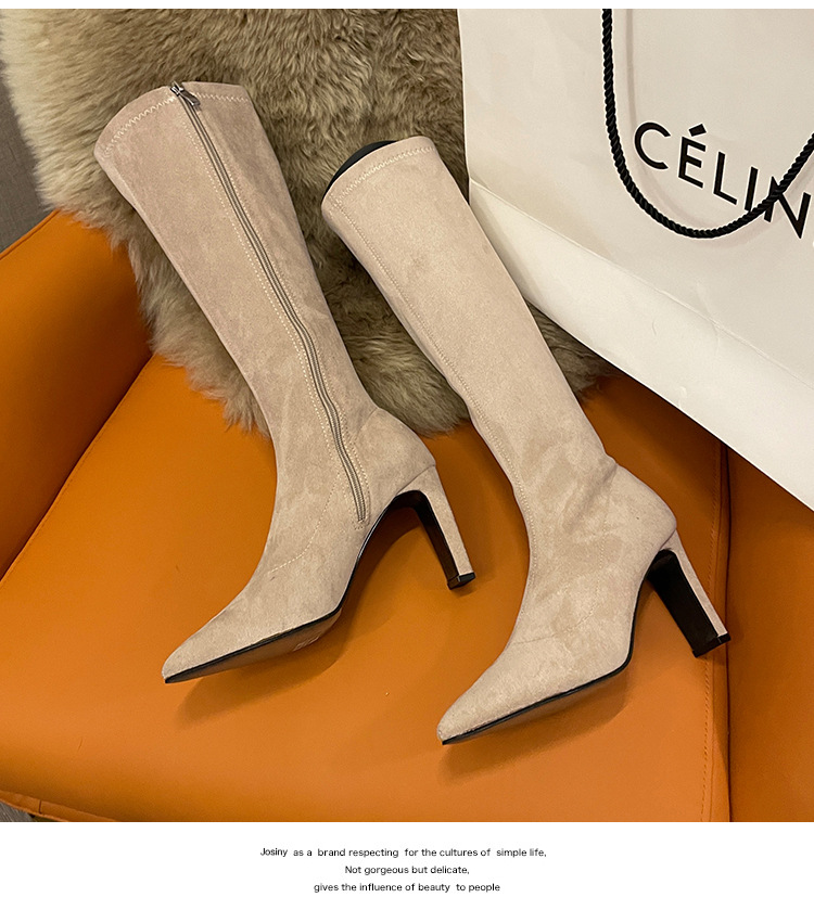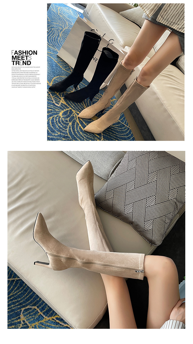 2024 가을과 겨울 새로운 한국식 미드 힐 여성 부츠 단색 두꺼운 뒤꿈치 뾰족한 부츠 얇은 부츠 무릎 부츠스토어 가기