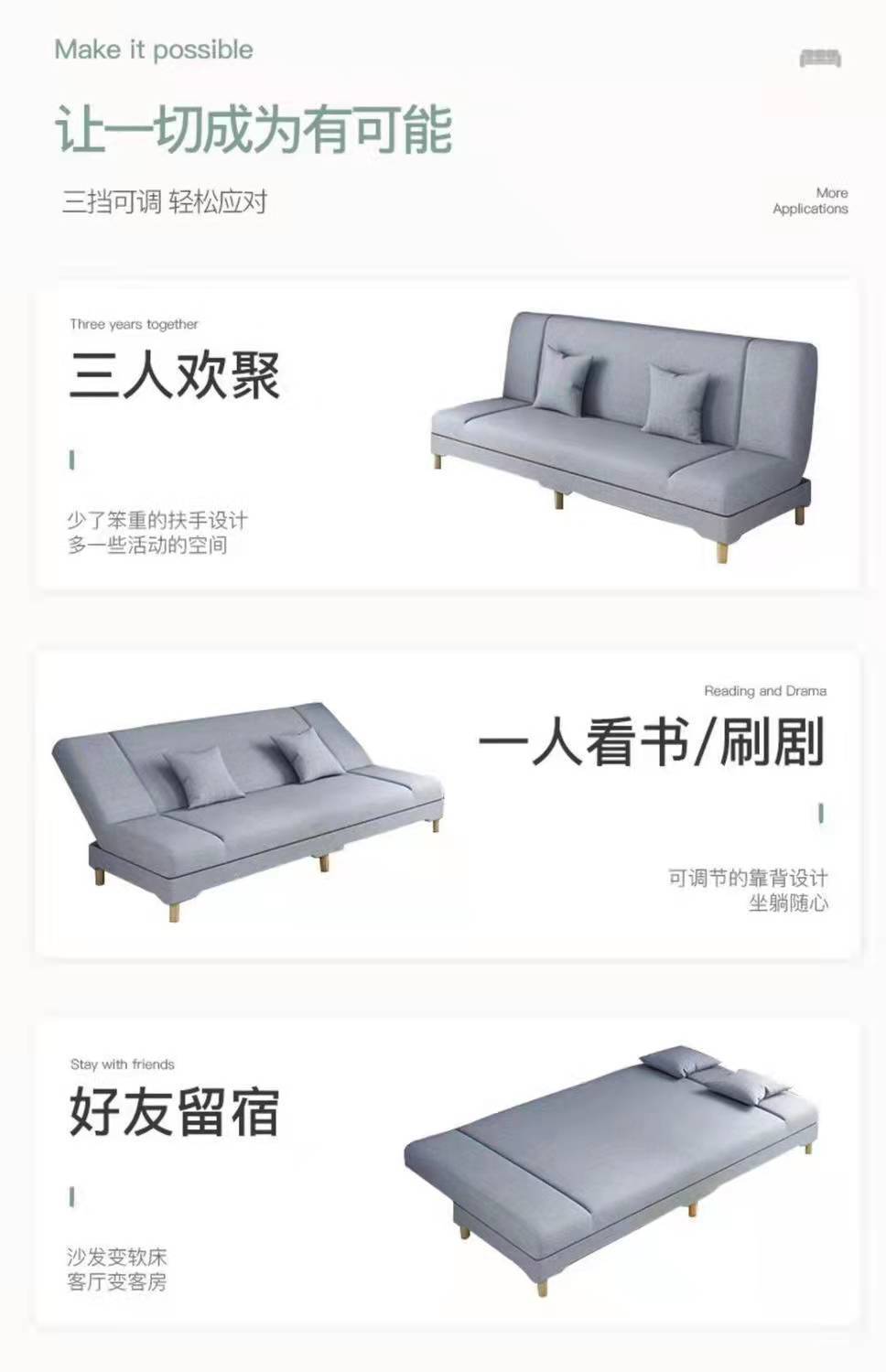 작은 아파트 거실 임대 주택 소파 침대 다기능 접이식 소파 침대 통합 이중 목적 게으른 직물 소파스토어 가기