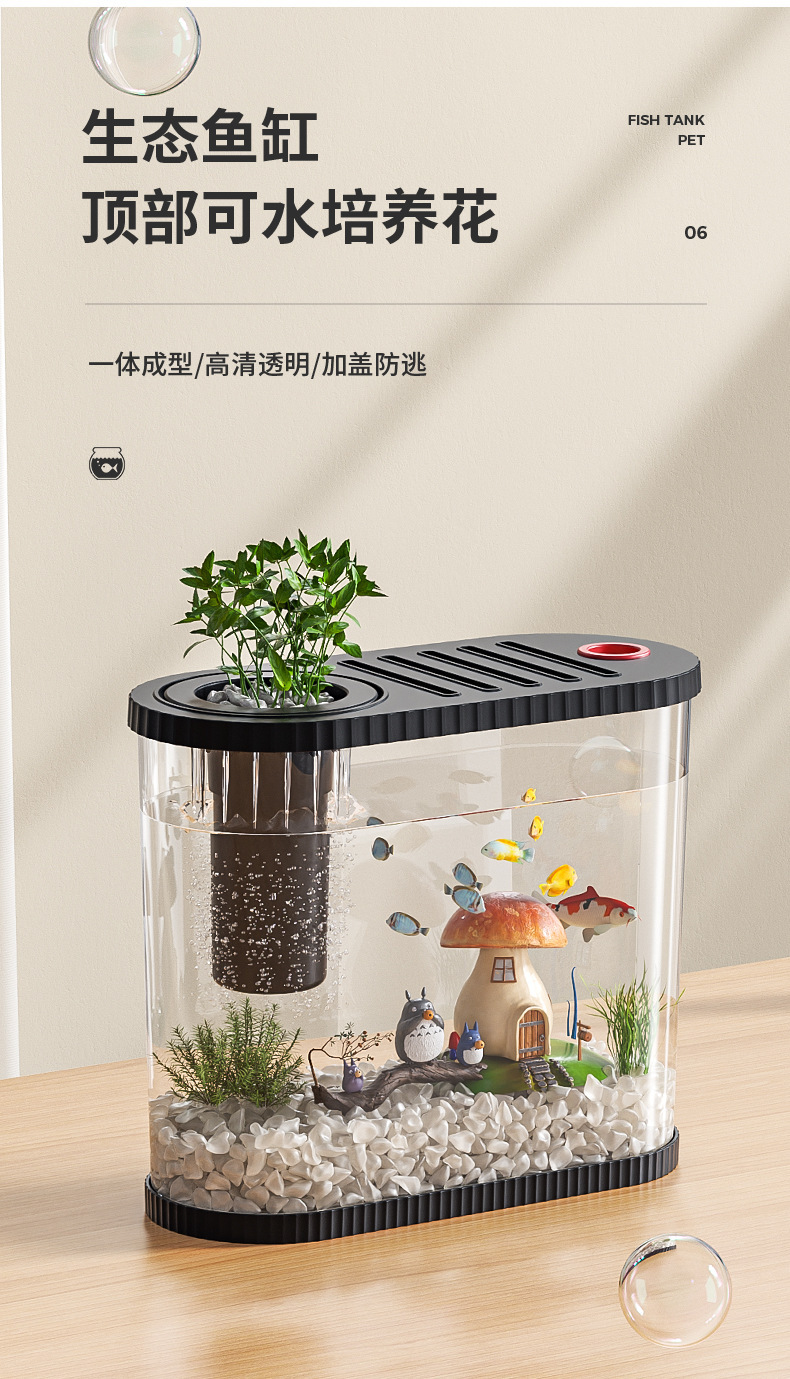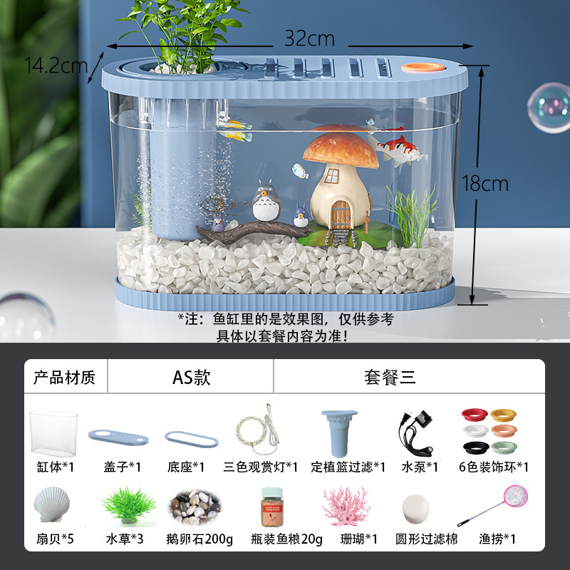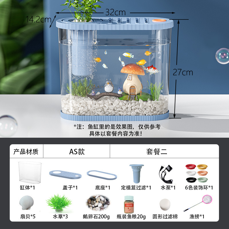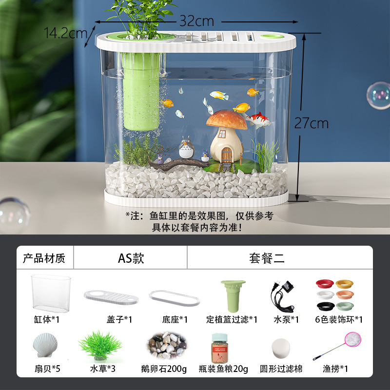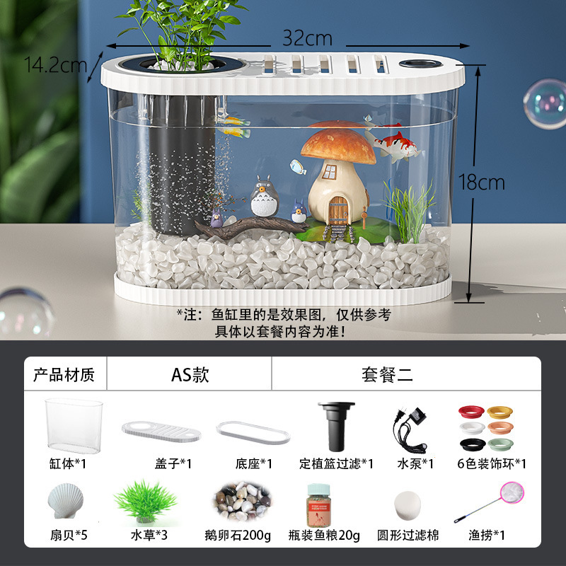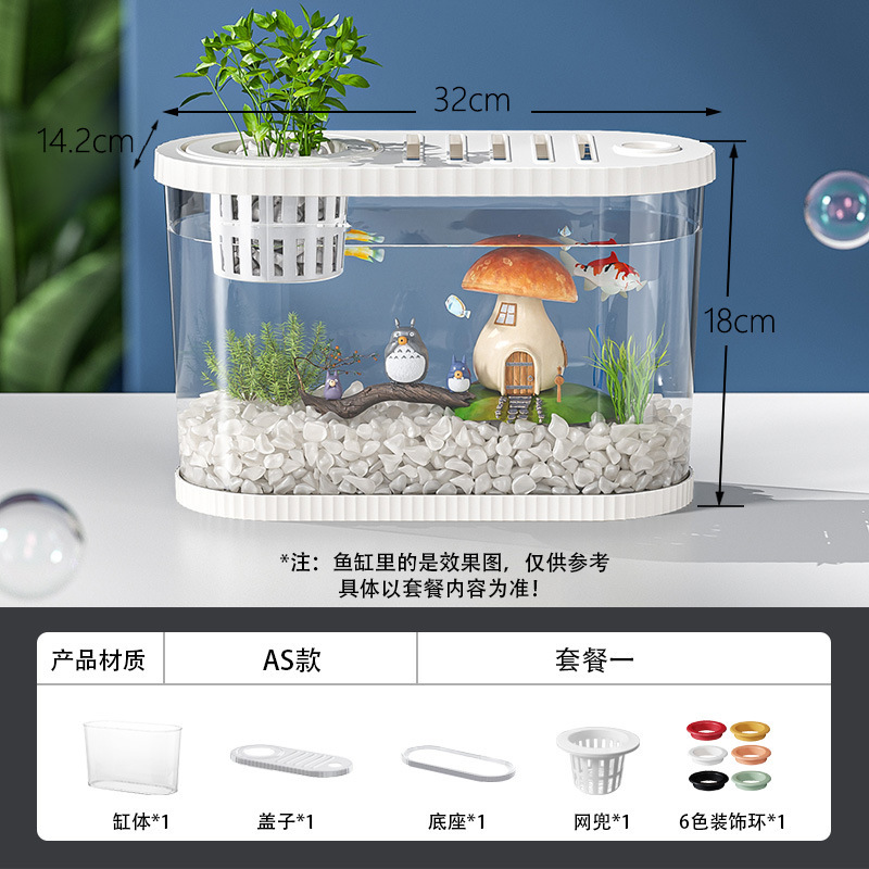 Kuo Ting 데스크탑 어항 가정용 거실 플라스틱 금붕어 탱크 작은 창조적 인 생태 조경 탱크 필터 순환 어항