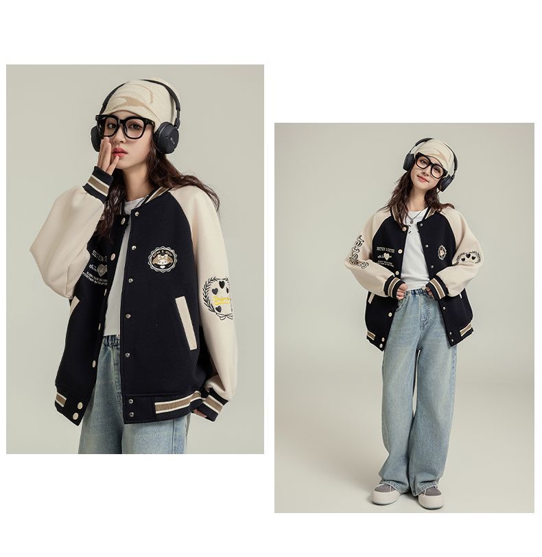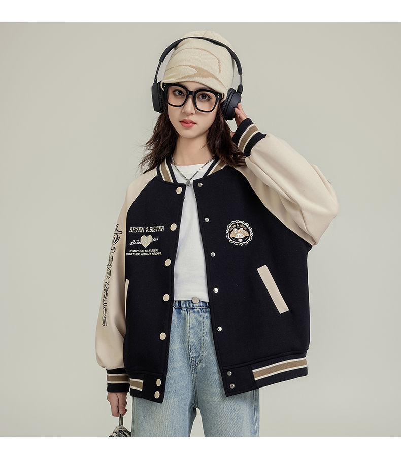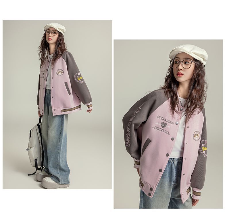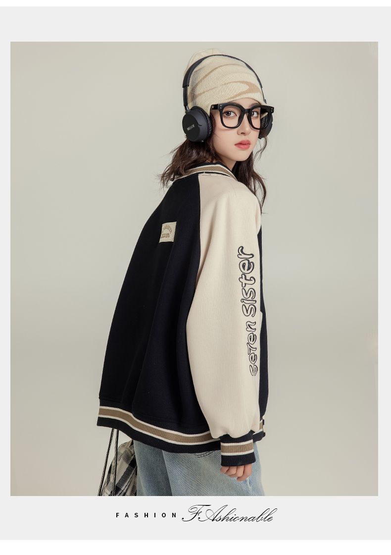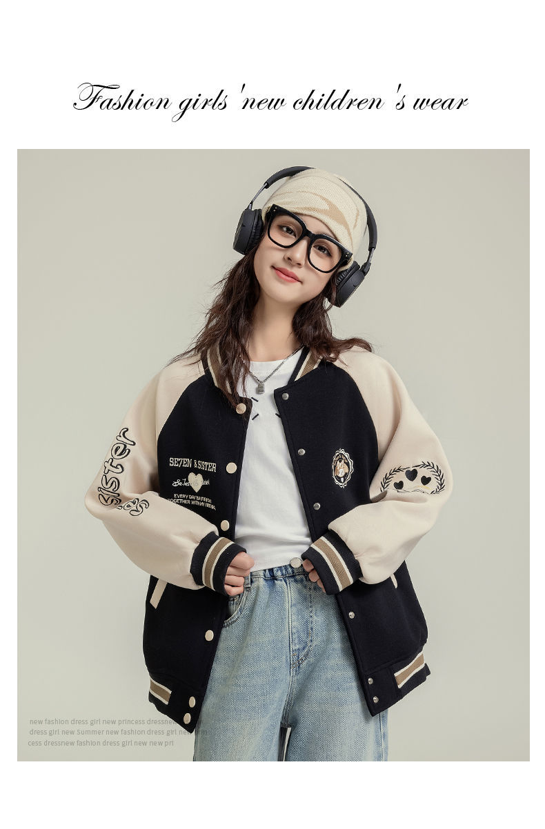 여자 야구 세트 코트 가을 새로운 스타일 큰 아이 카디건 캐주얼 느슨한 봄과 가을 재킷 탑