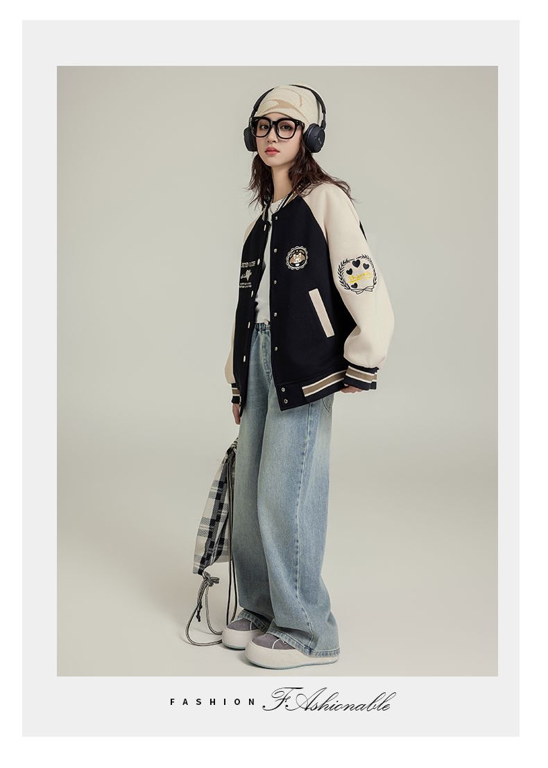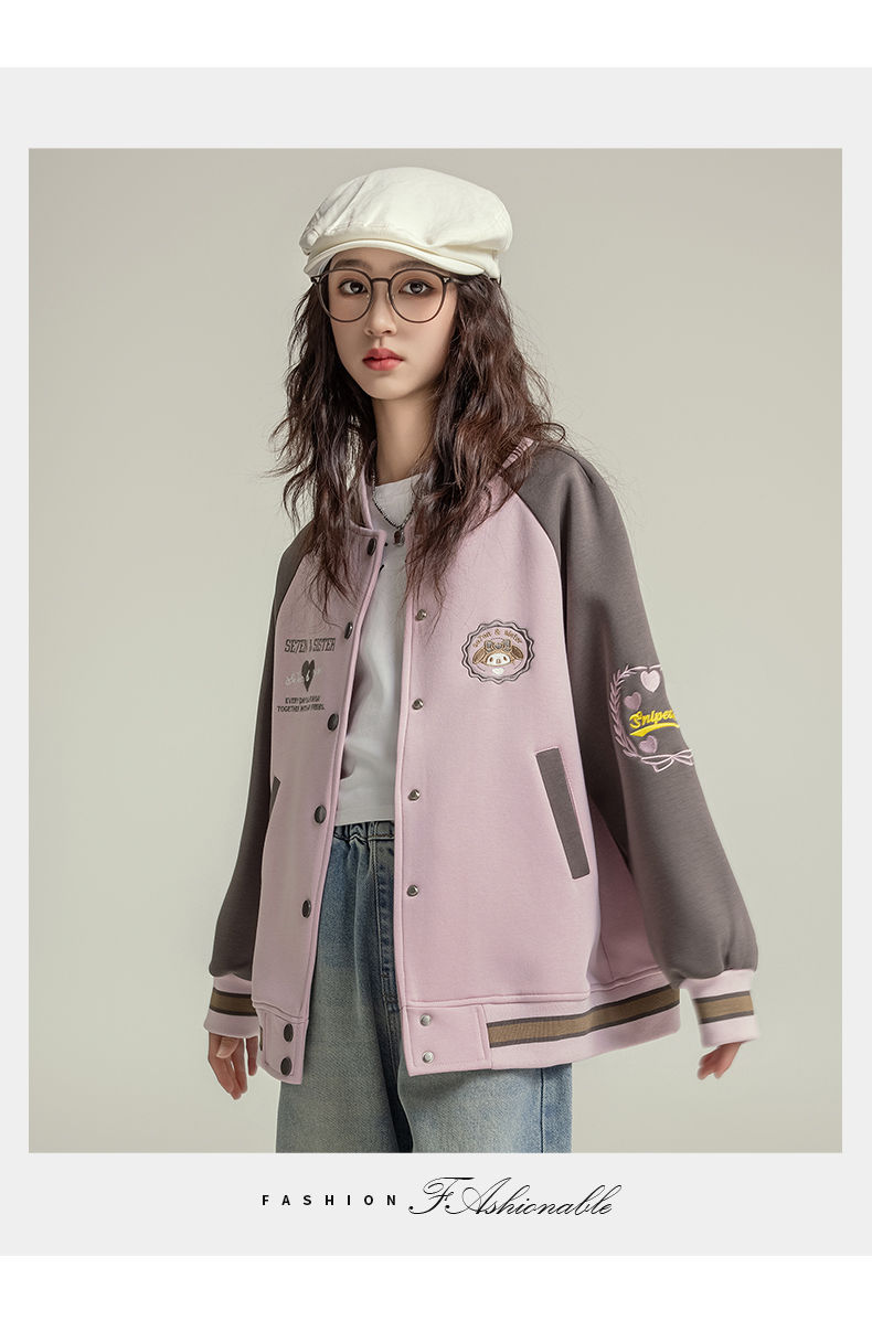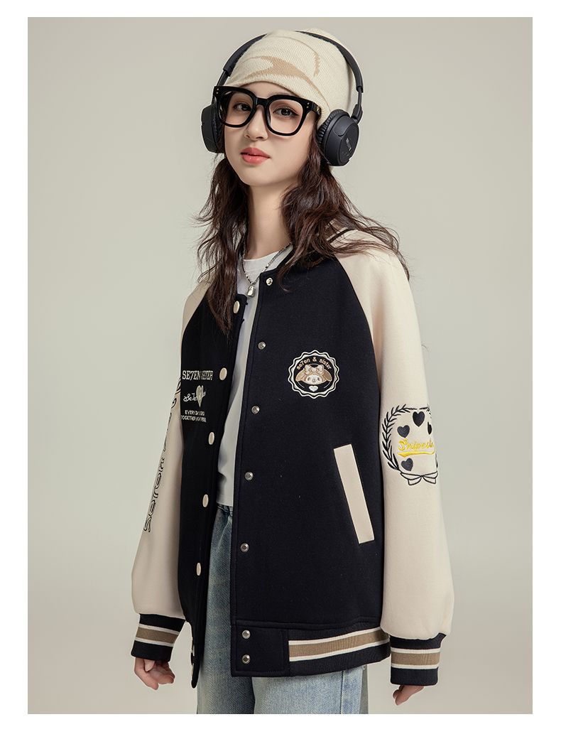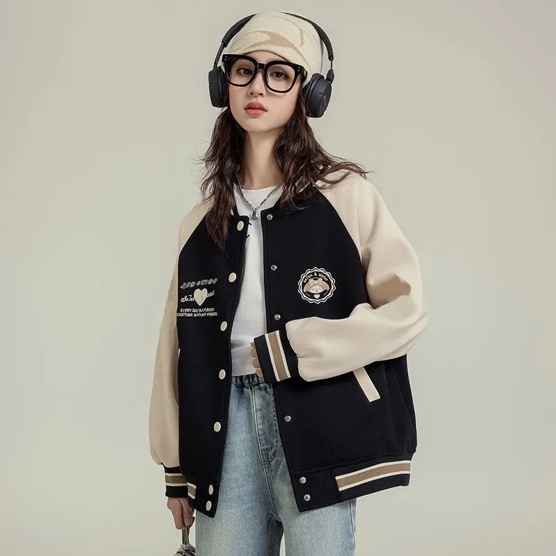 여자 야구 세트 코트 가을 새로운 스타일 큰 아이 카디건 캐주얼 느슨한 봄과 가을 재킷 탑