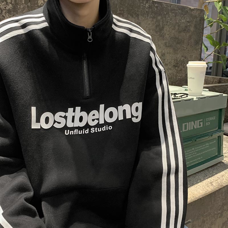 기모 하프 지퍼 수직 칼라 땀 남자 하프 하이 칼라 가을 및 겨울 중학생 및 고등학생을위한 미국 스타일 트렌디 브랜드스토어 가기