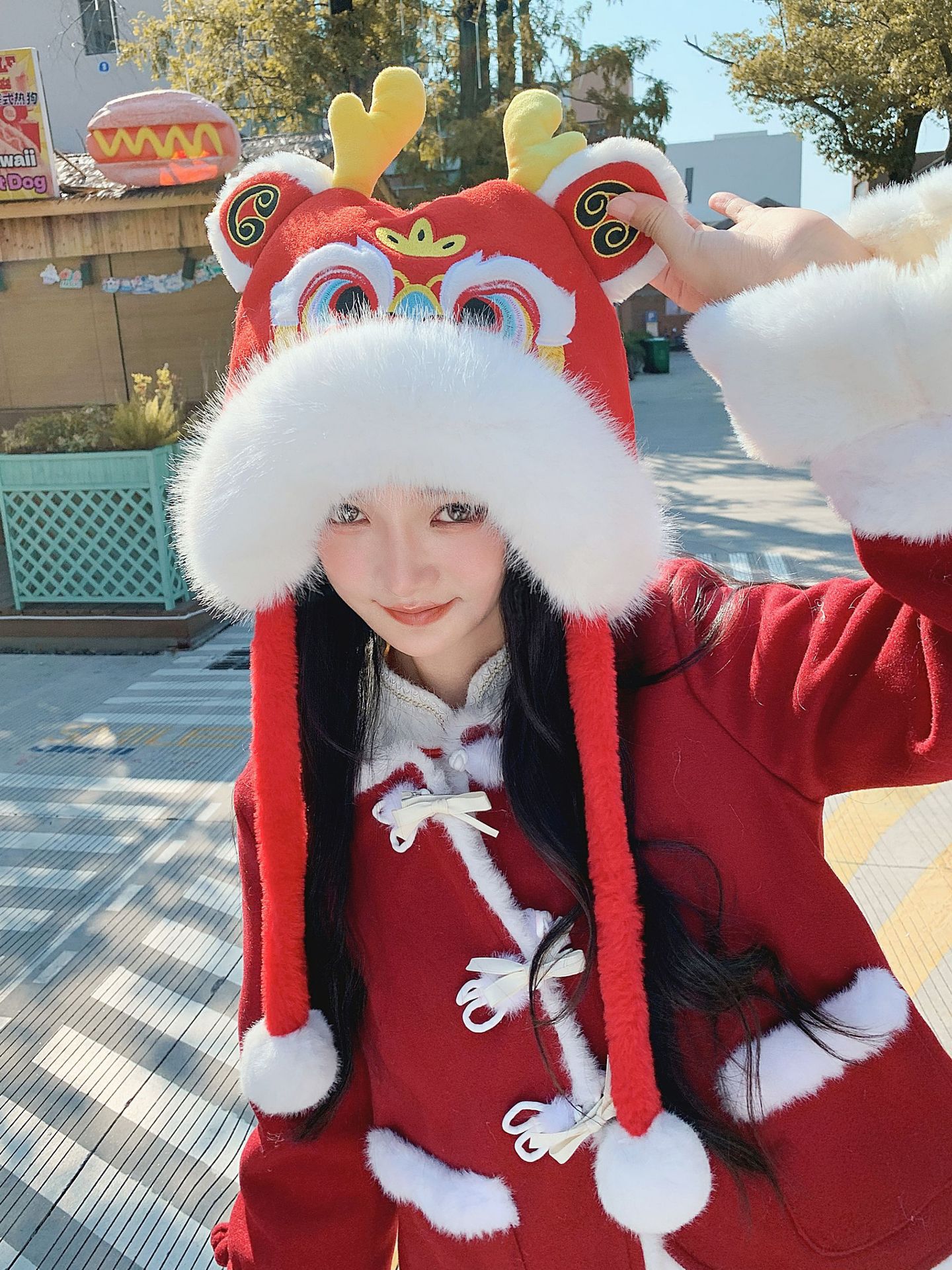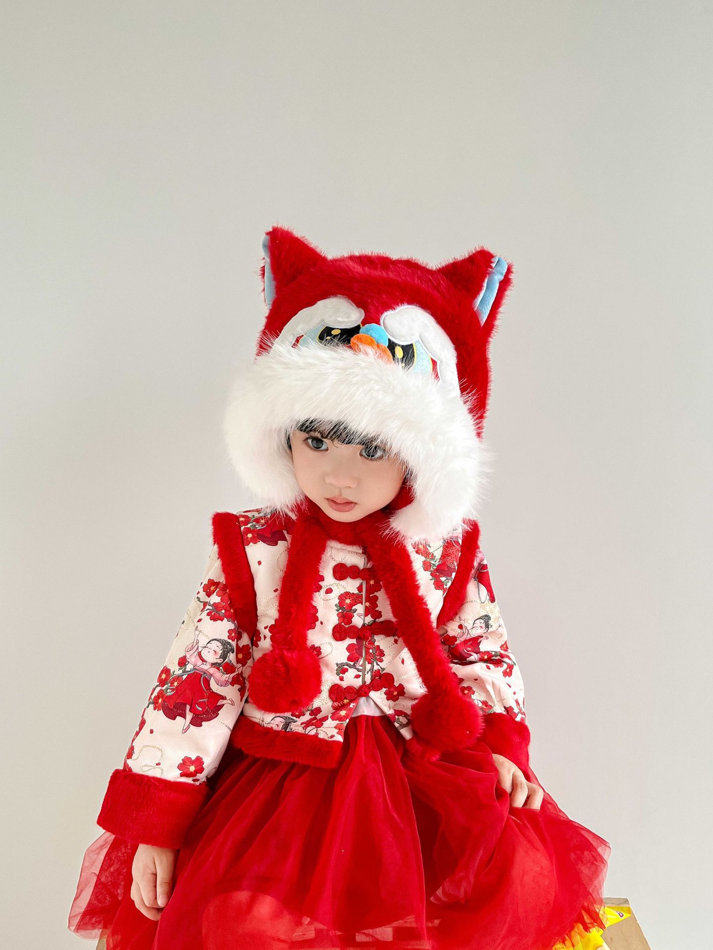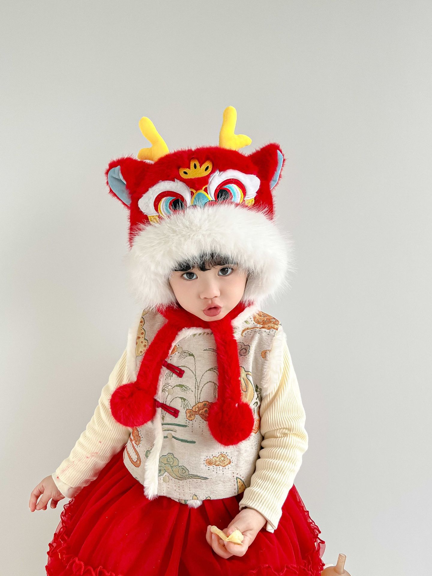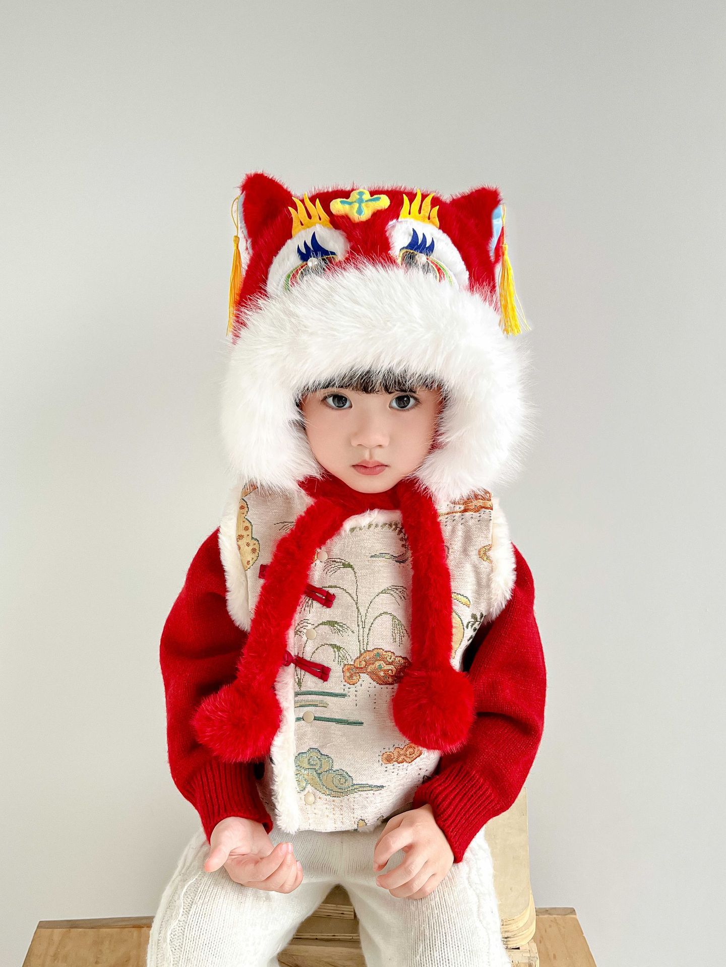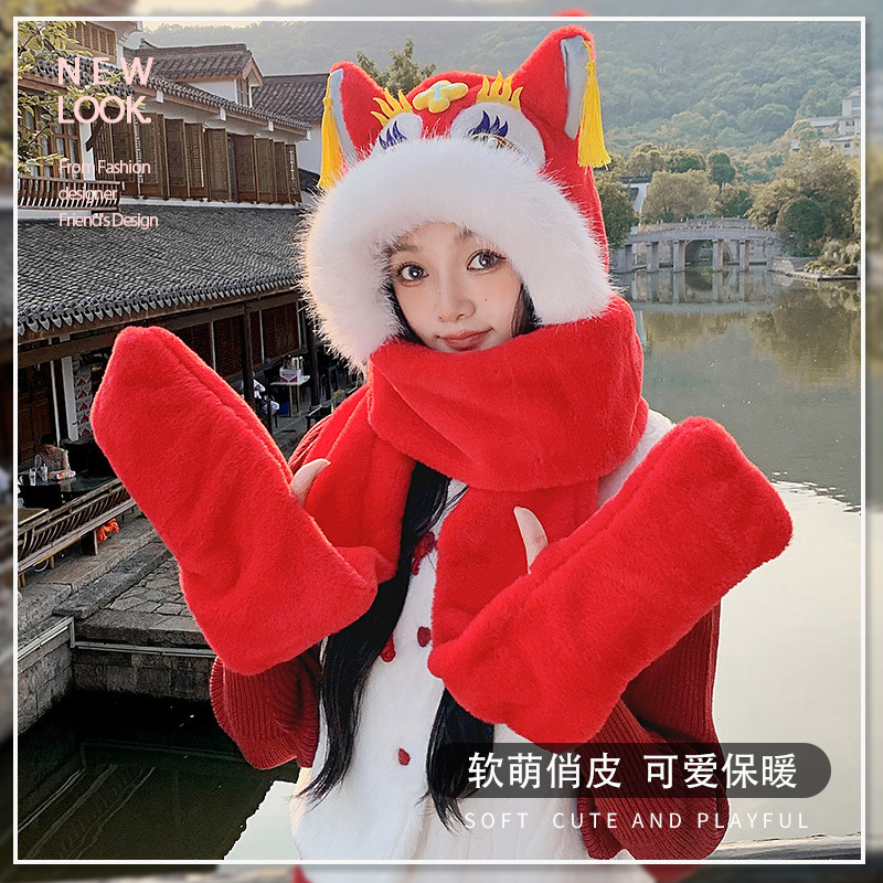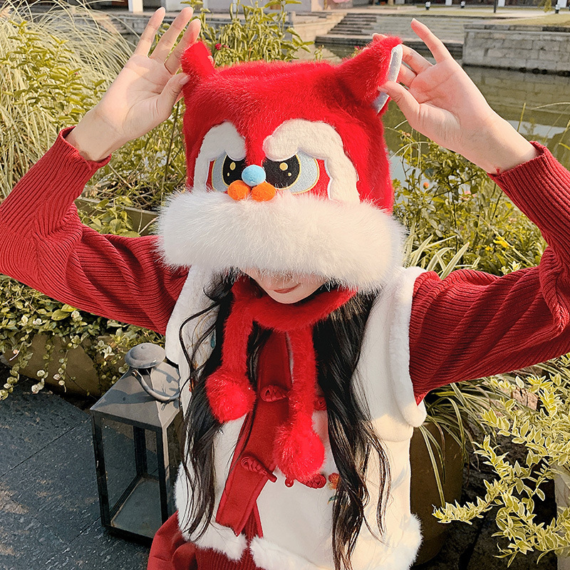 国潮舞狮护耳帽【红色】20
