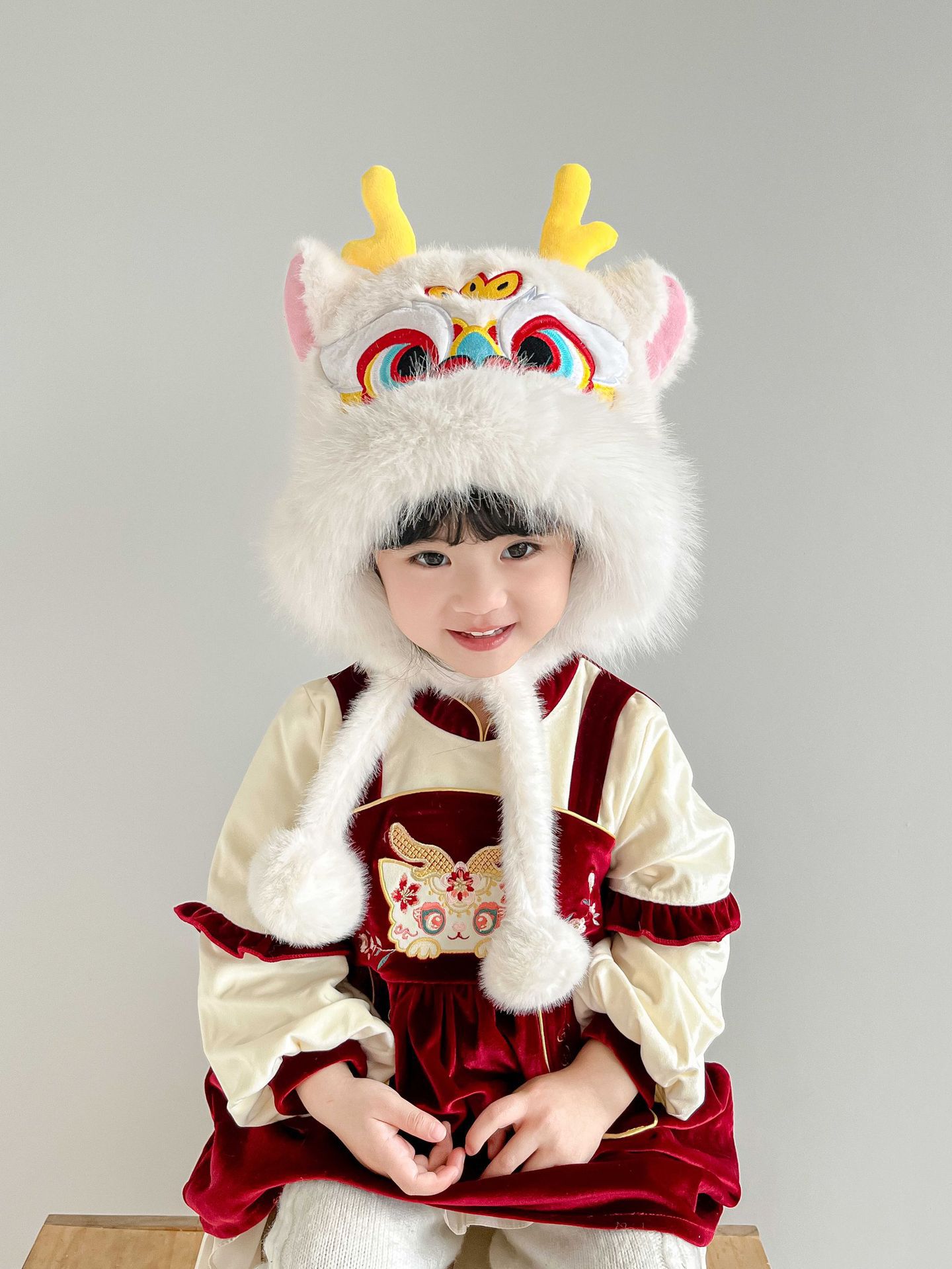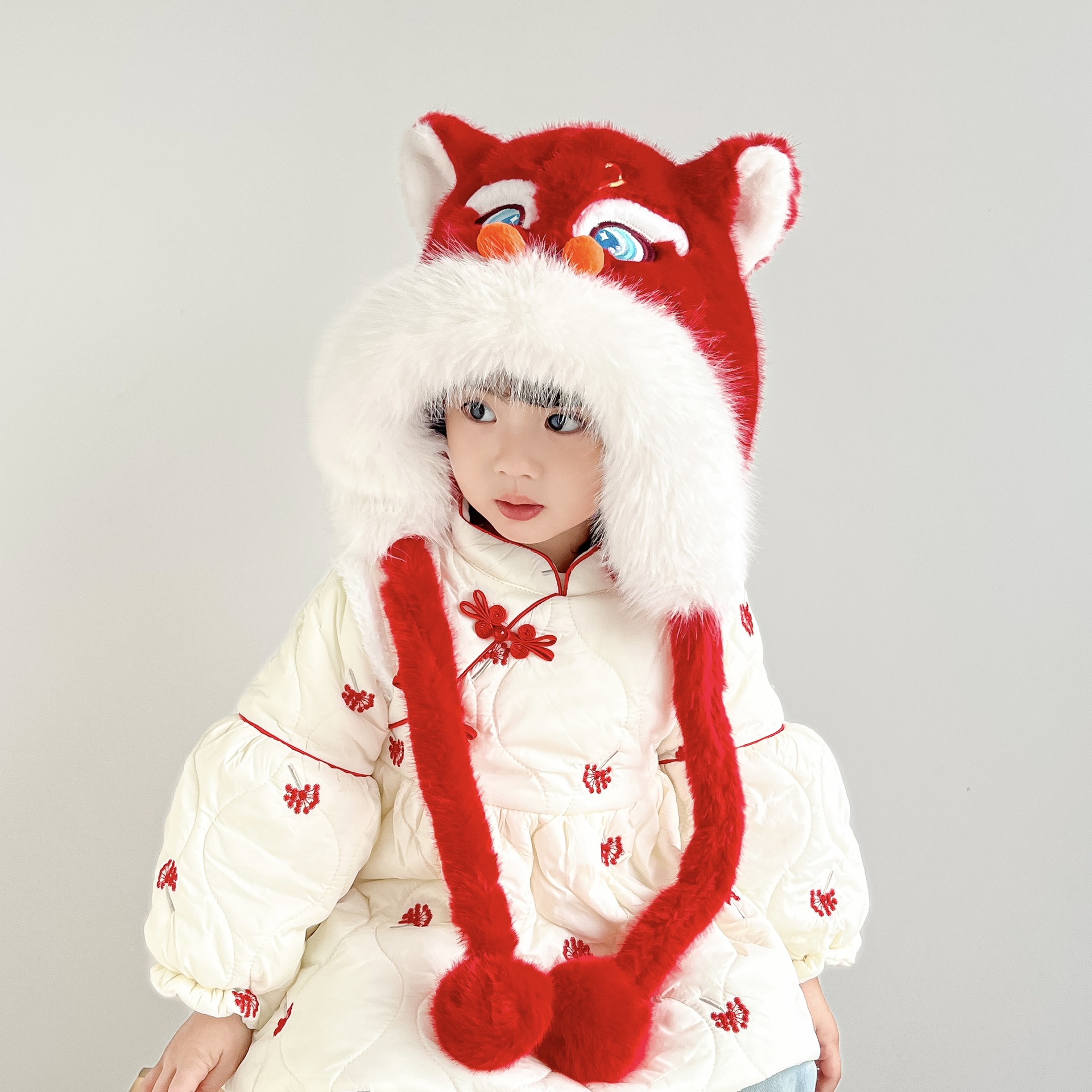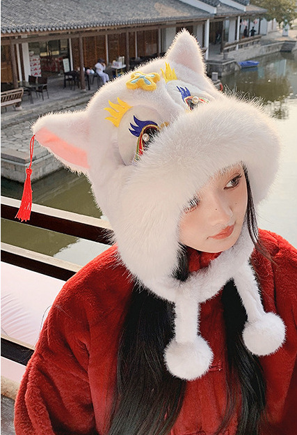 国潮舞狮护耳帽【白色】20