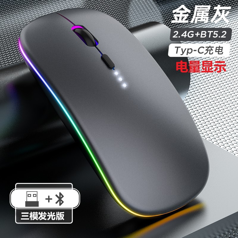 • [플래그십 충전 블루투스 3모드 야광 버전 Qingying 메탈릭 그레이 [2.4G 무선 무음 + 블루