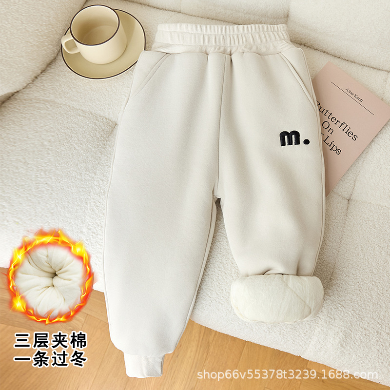 두꺼운 겨울 바깥에 기모 여분의 두꺼운 아기의 면화 바지 남학생과 여학생을위한 겨울 어린이 3 층 면 따뜻한 바지를 착용하십시오.스토어 가기
