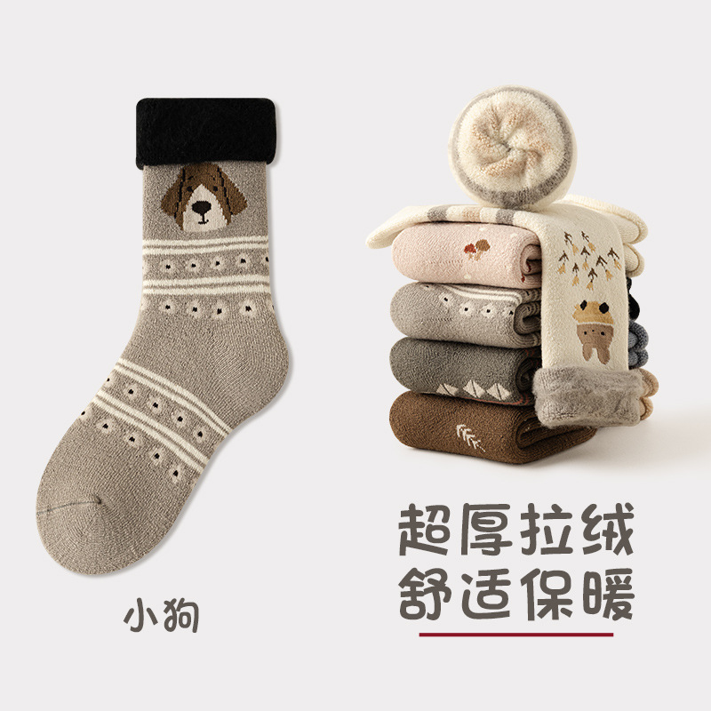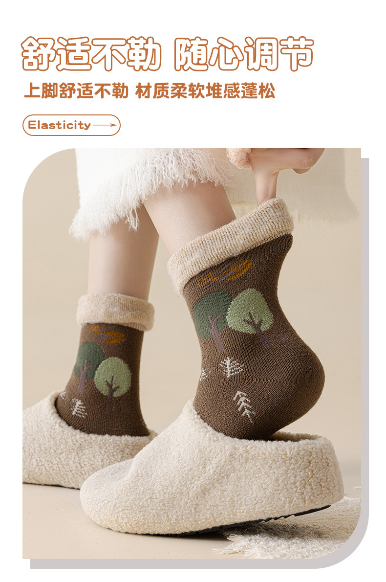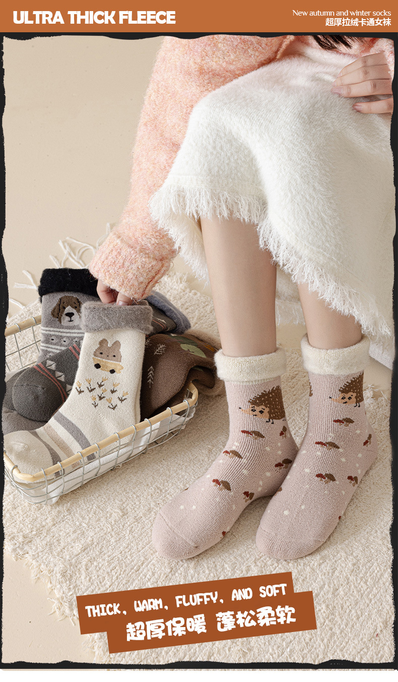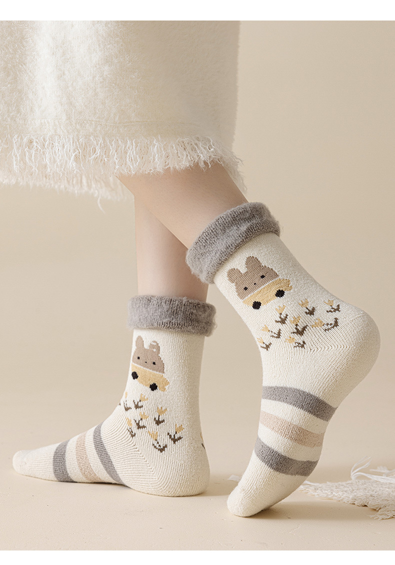 가을과 겨울 기모 양말 한국 만화 두꺼운 턴 업 테리 여성의 중간 튜브 양말 따뜻한 기모 눈 양말 통기성스토어 가기