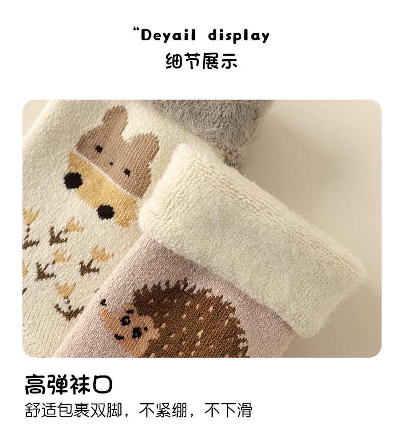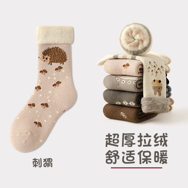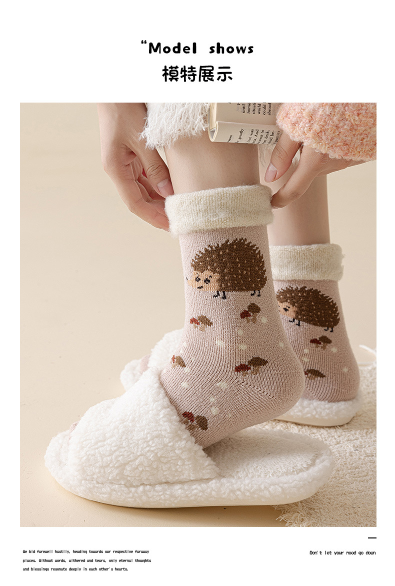 가을과 겨울 기모 양말 한국 만화 두꺼운 턴 업 테리 여성의 중간 튜브 양말 따뜻한 기모 눈 양말 통기성