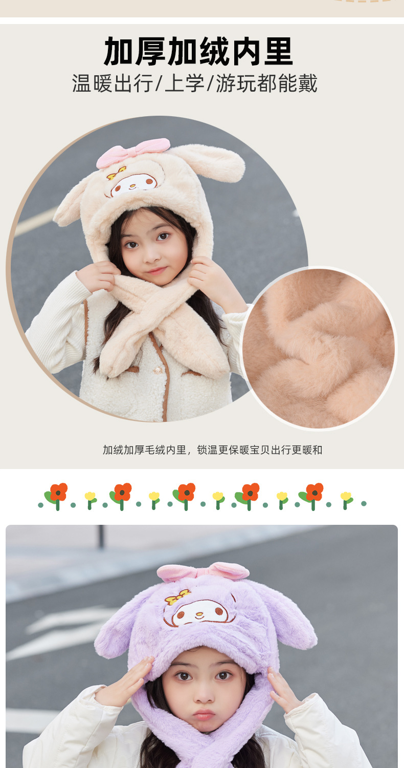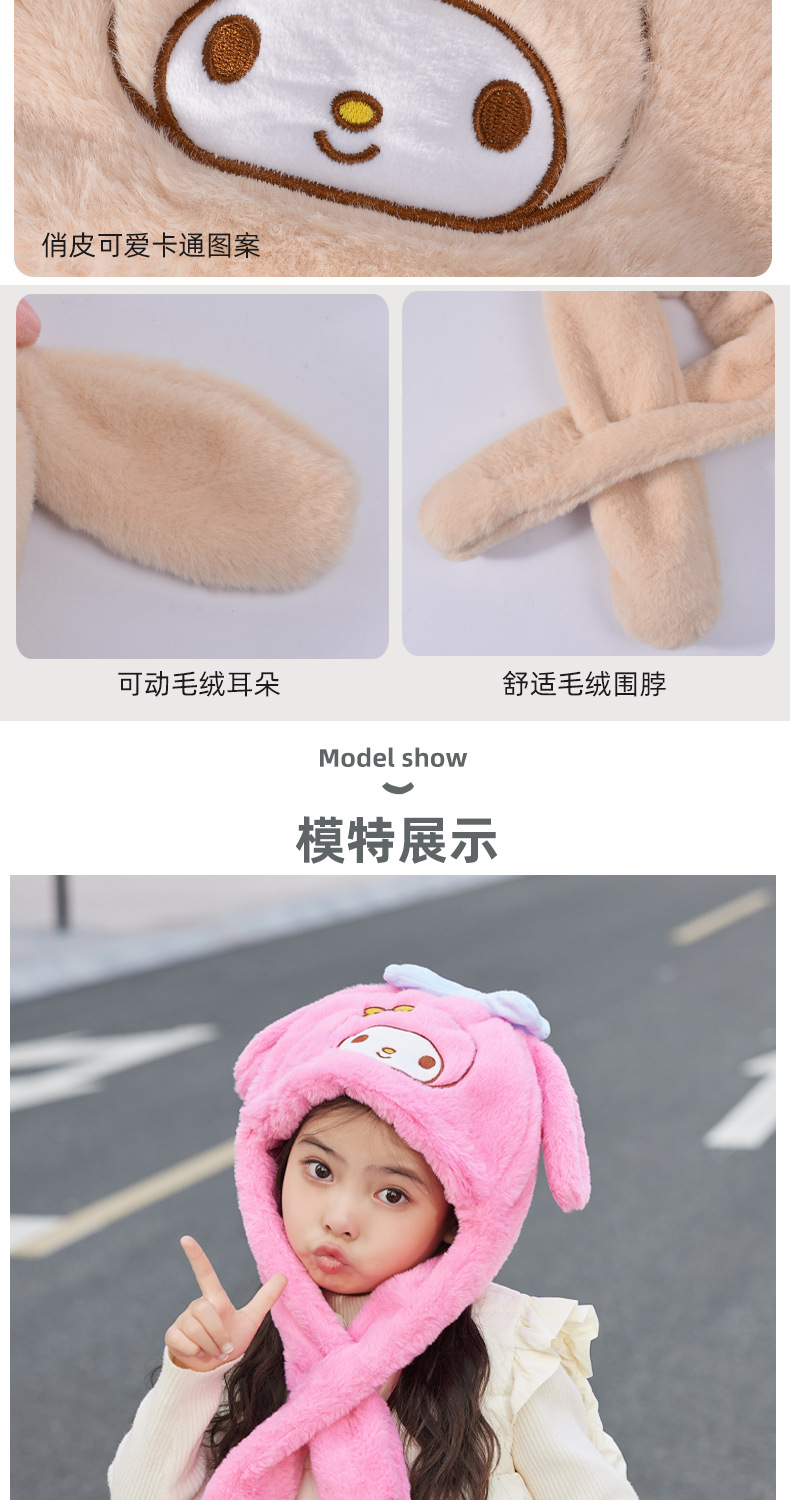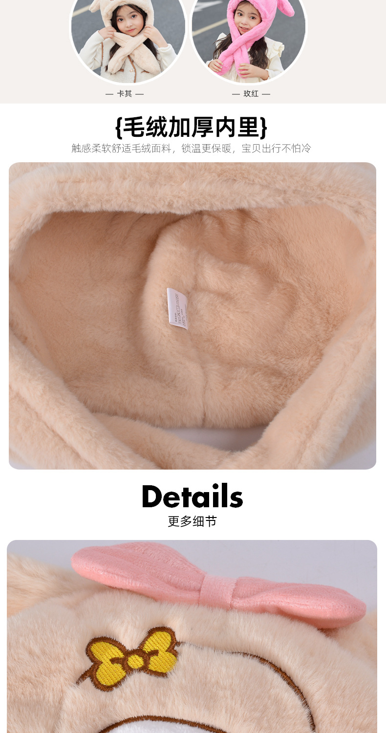 귀는 어린이 모자 만화 귀여운 봉제 귀 보호 모자 겨울 야외 따뜻한 스카프 올인원 모자를 움직일 수 있습니다