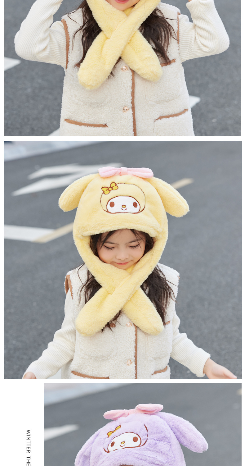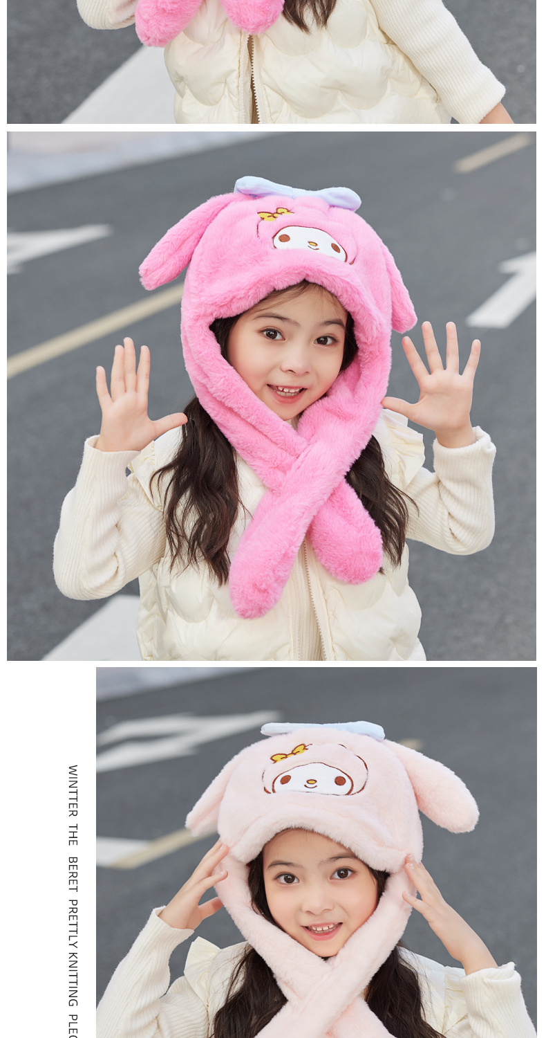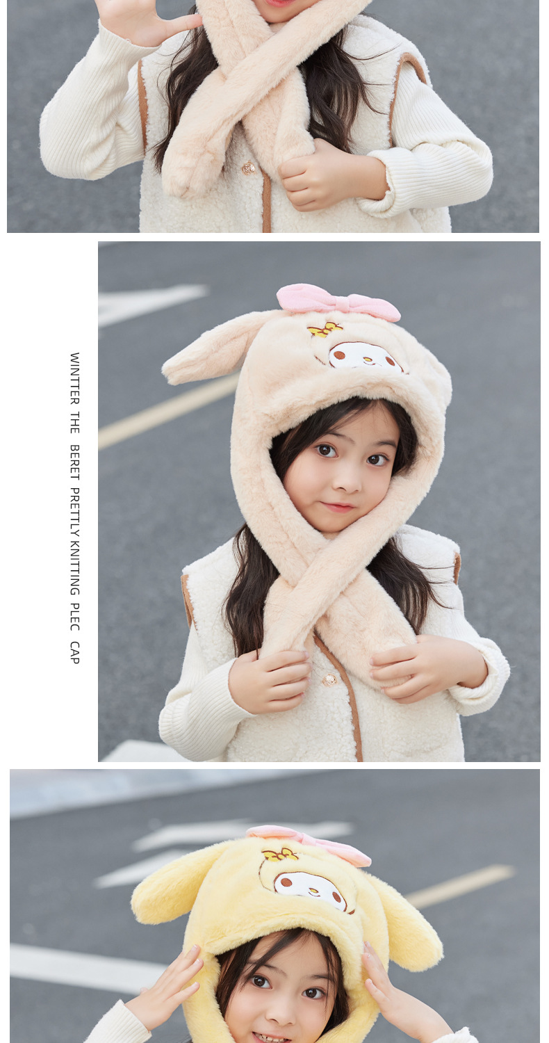 귀는 어린이 모자 만화 귀여운 봉제 귀 보호 모자 겨울 야외 따뜻한 스카프 올인원 모자를 움직일 수 있습니다