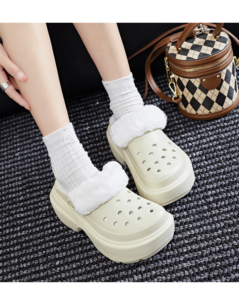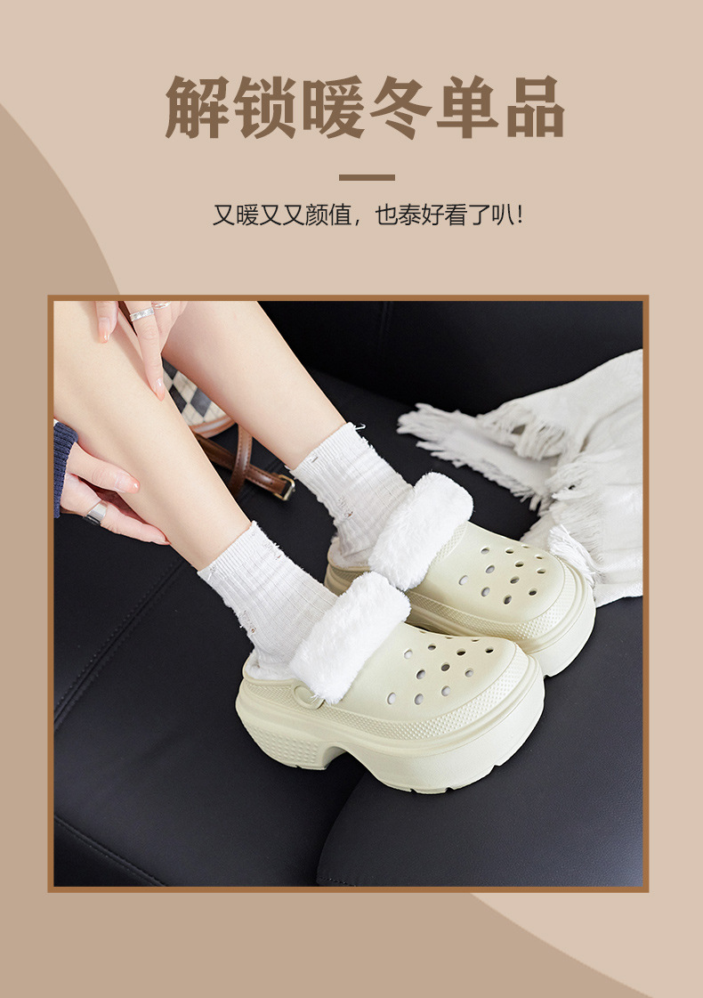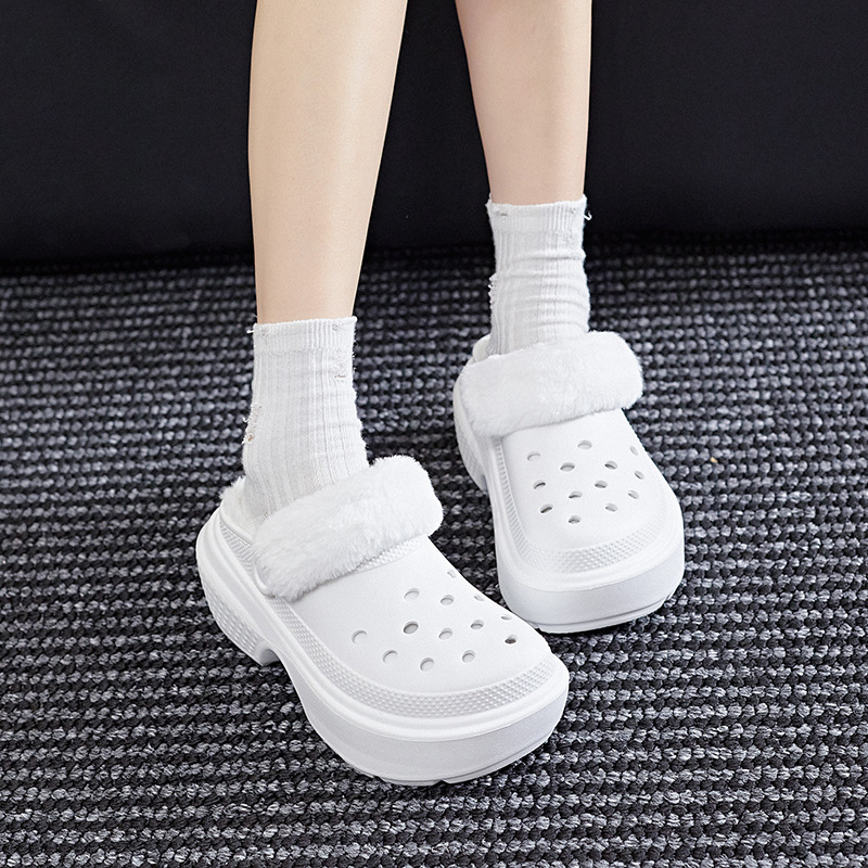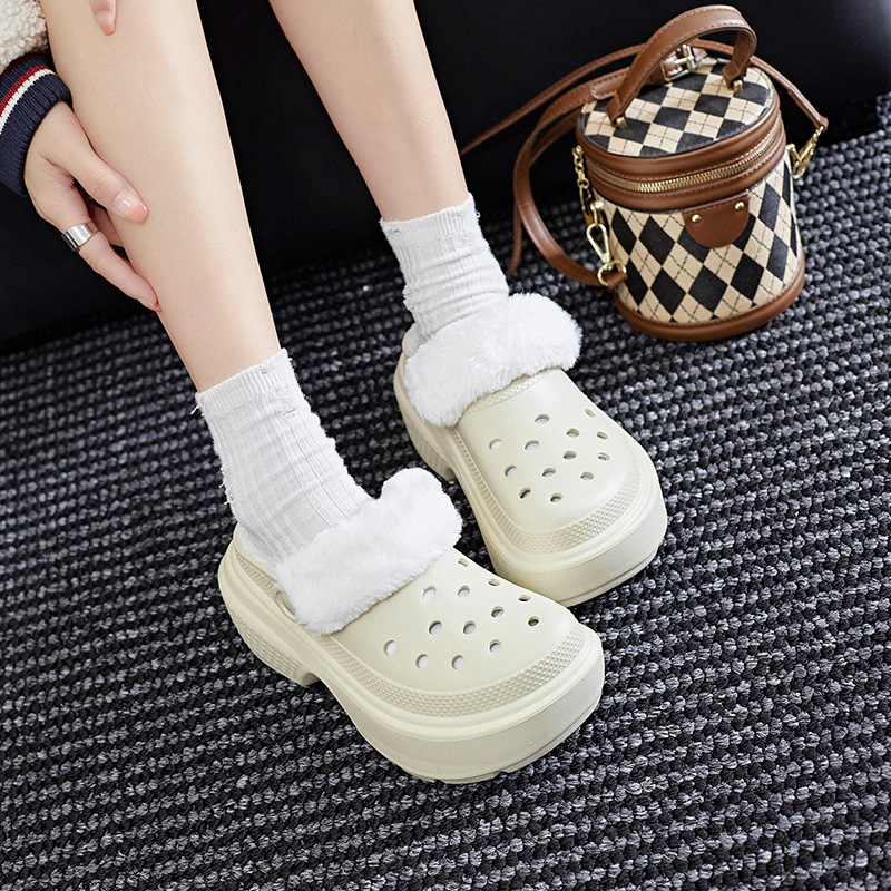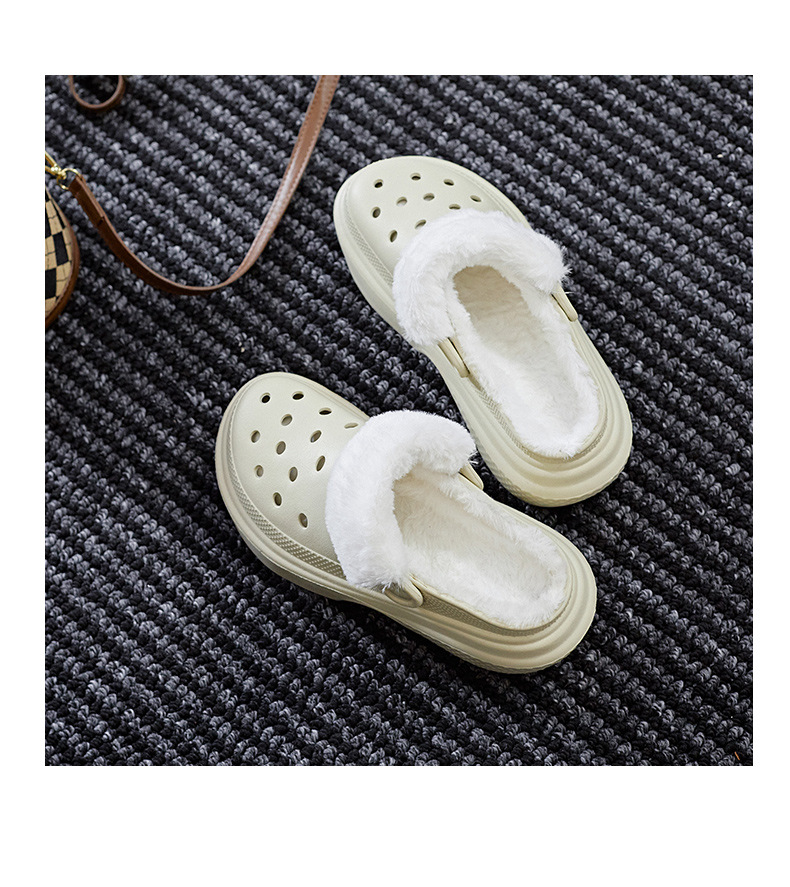 겨울 새로운 캐주얼 올 매치 여성 동굴 신발 따뜻한 두꺼운 단독 신발 신발, 가정 및 의상 면화 상점의 기모 느낌을 높이기 위해 신발을 밟을 수 있습니다.스토어 가기
