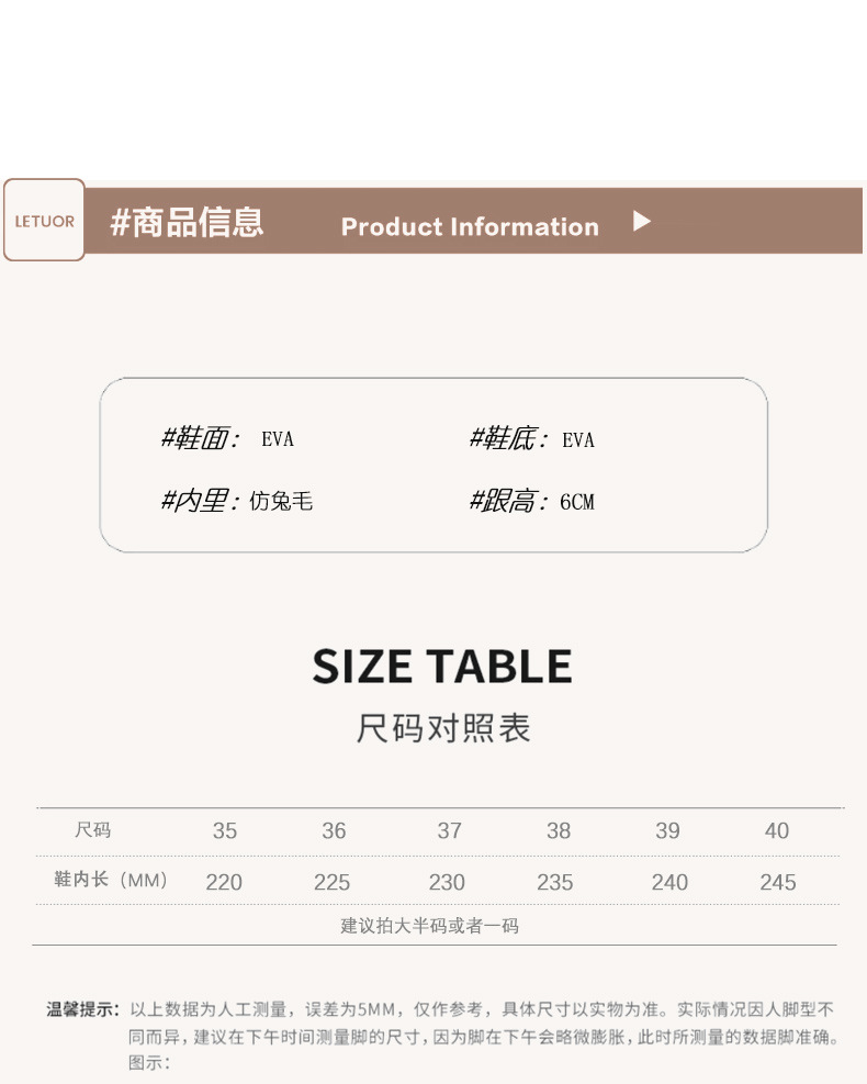 因为套用棉套,鞋码偏小,下单的朋友们请拍大一个码段,棉套不可拆卸