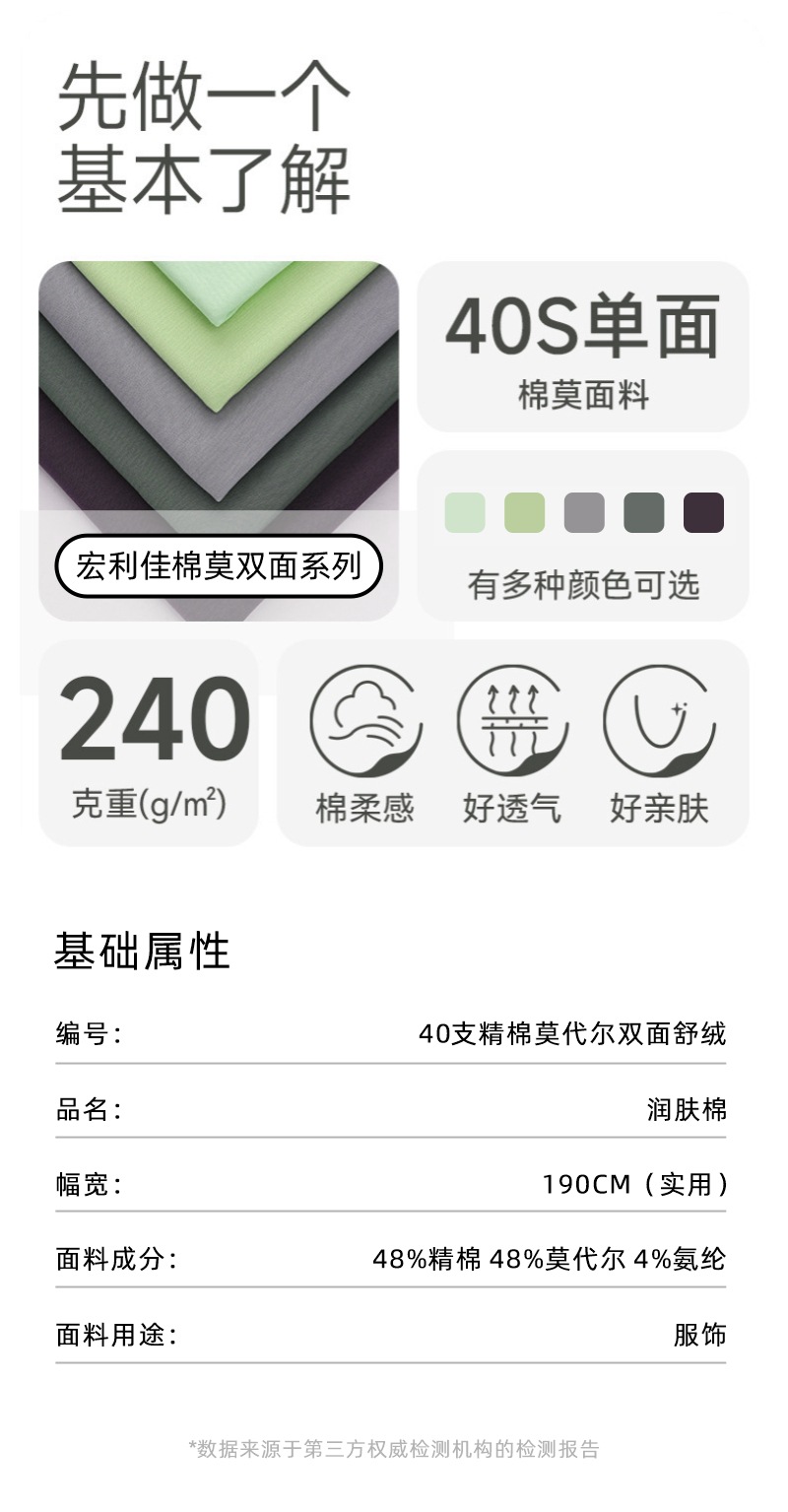 40수 코마사 모달 면 양면 니트 원단 평직 신축성 속옷 잠옷 남녀공용 항균 원단