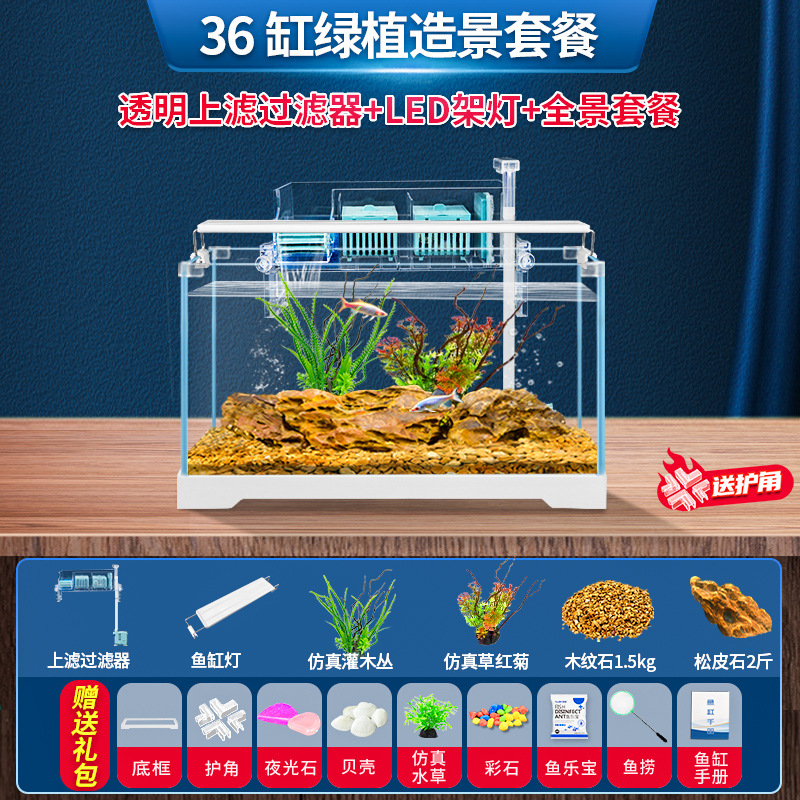 어항 생태 테이블 어항 가정용 수초 관상어 초백유리 중소형 거실 장식 금붕어 어항 도매